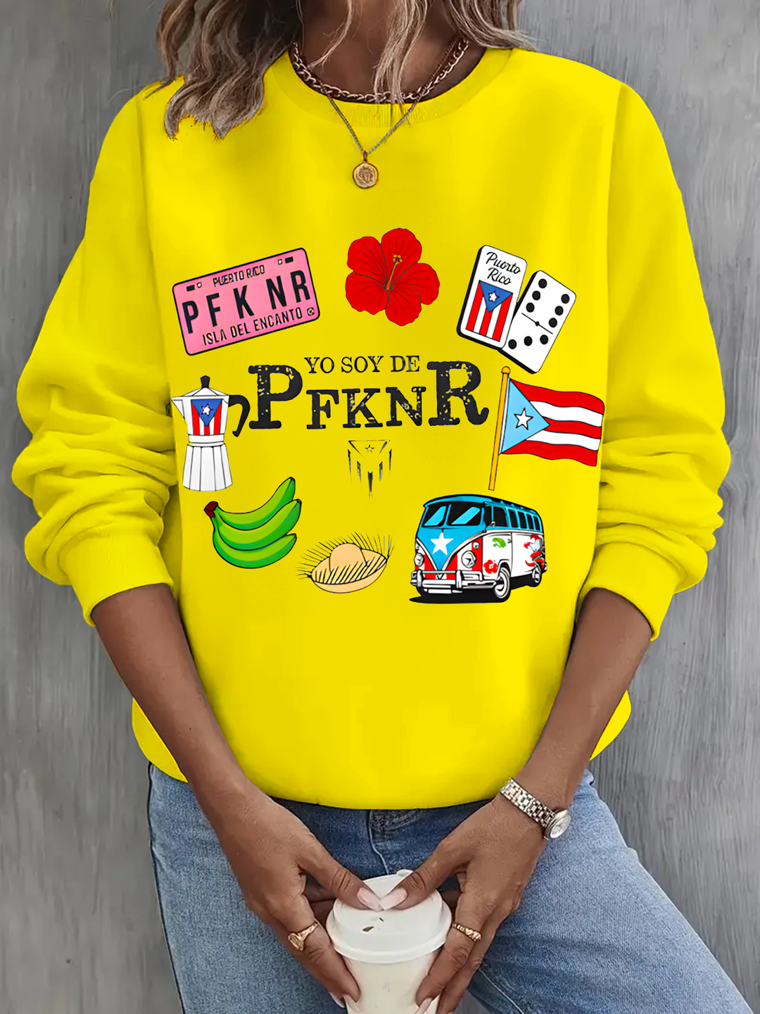 Puerto Rico Raglan Printed Long Sleeve Casual Top
