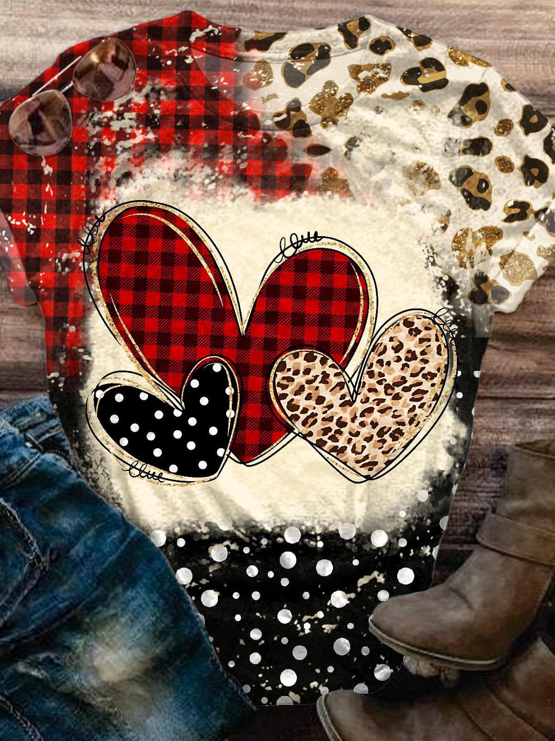 Valentine's Day Art Splicing Crew Neck T-shirt