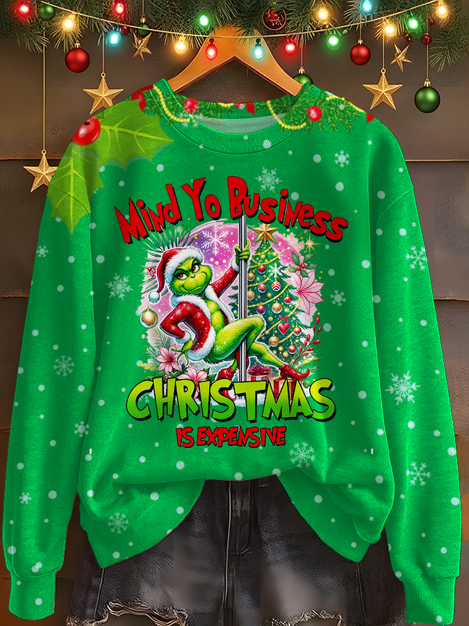 Mind Your Business Christmas Bout To Be Expensive Printed Long Sleeve Casual Top