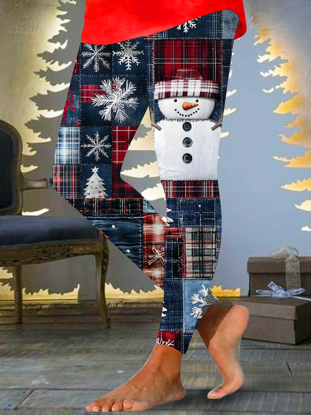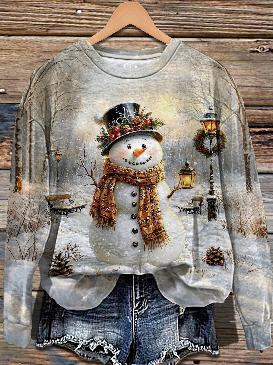 Retro Fun Snowman Printed Long Sleeve Casual Top