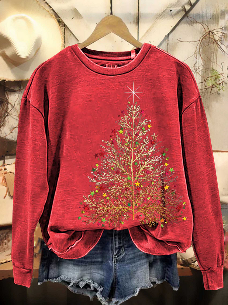 Christmas Cat and Christmas Tree Long Sleeve Casual Top