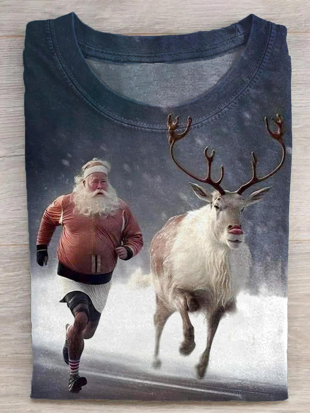 Christmas Santa Claus Flag Print Crew Neck T-shirt