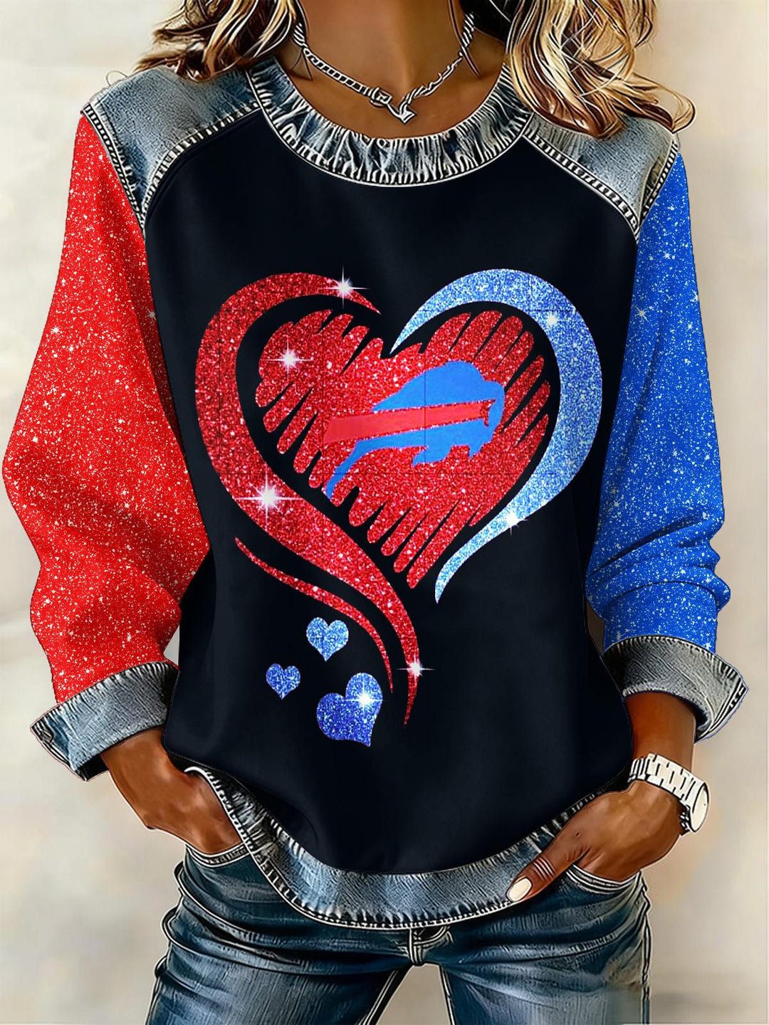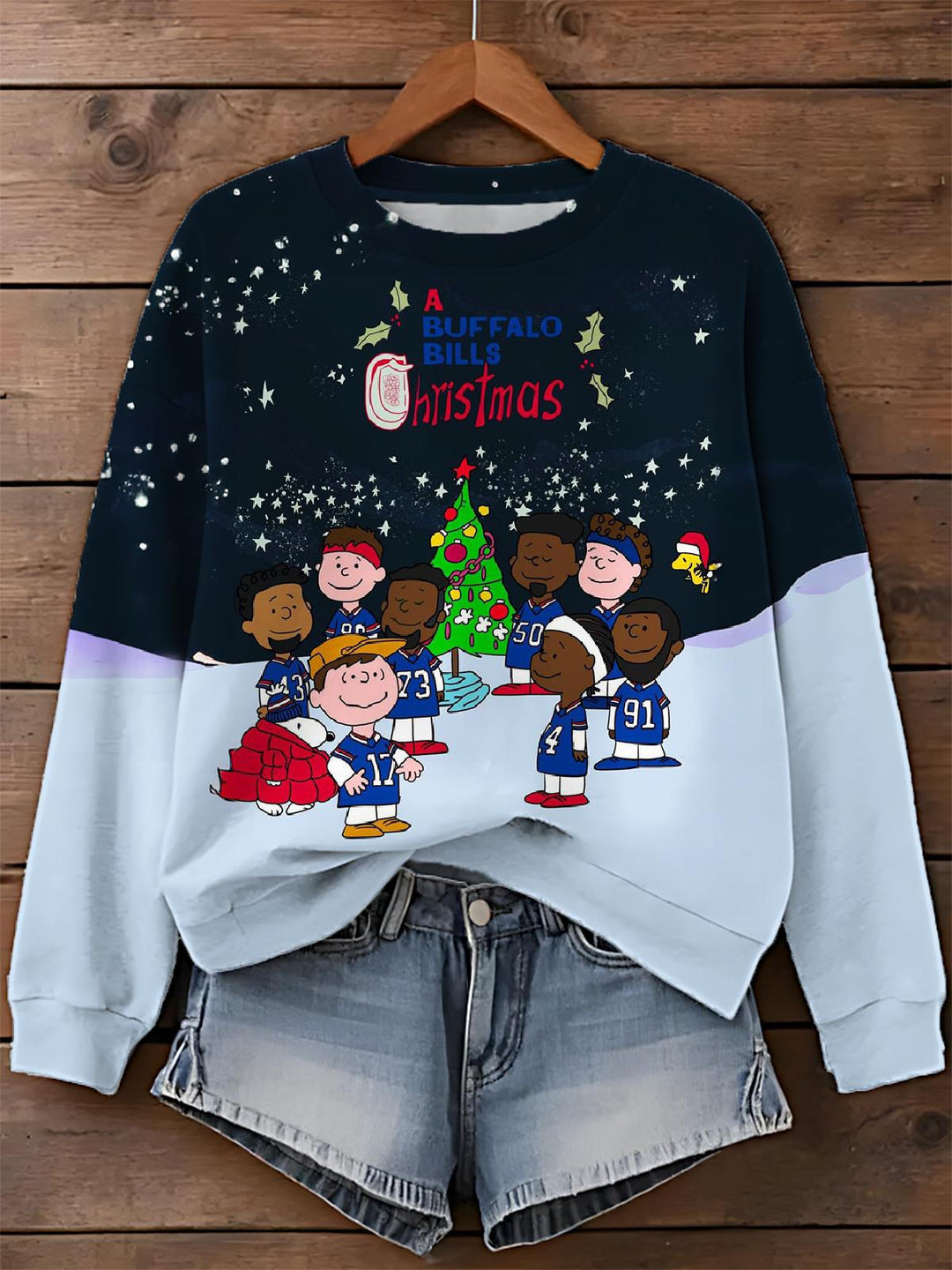 Snoopy Buffalo Bills Linkage Printed Long Sleeve Casual Top
