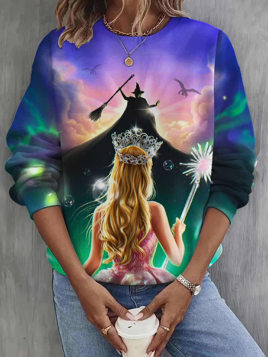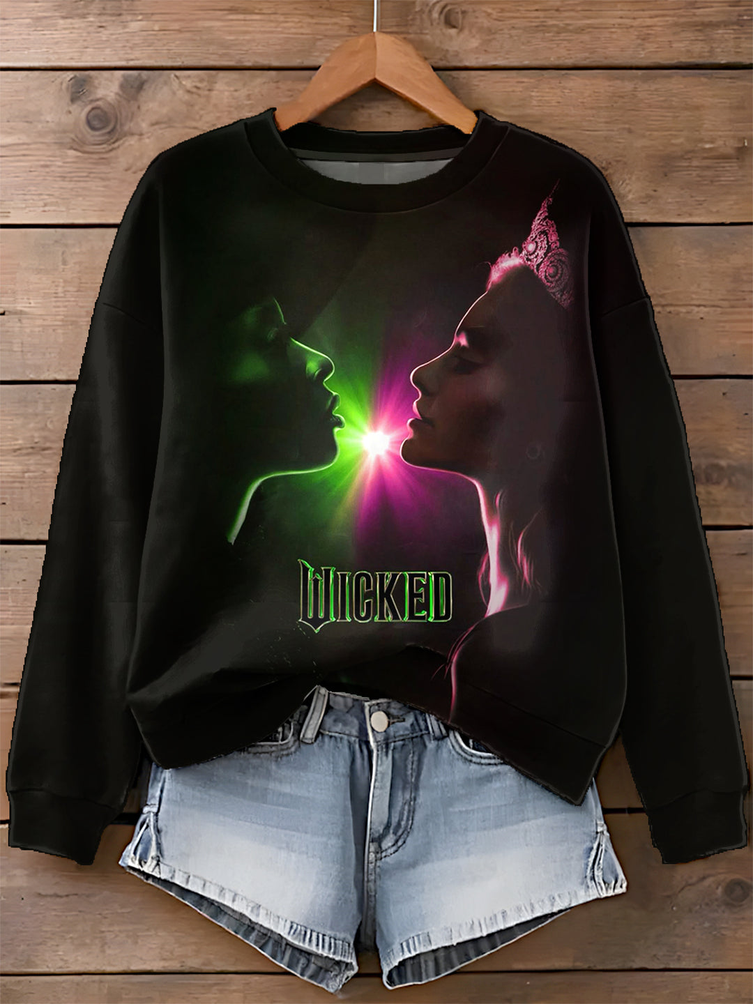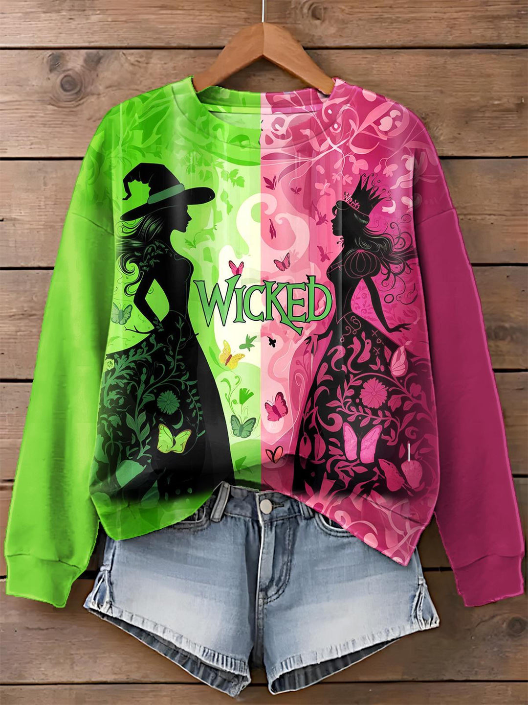Wicked Glinda & Elphaba Hand Drawn Printed Long Sleeve Casual Top