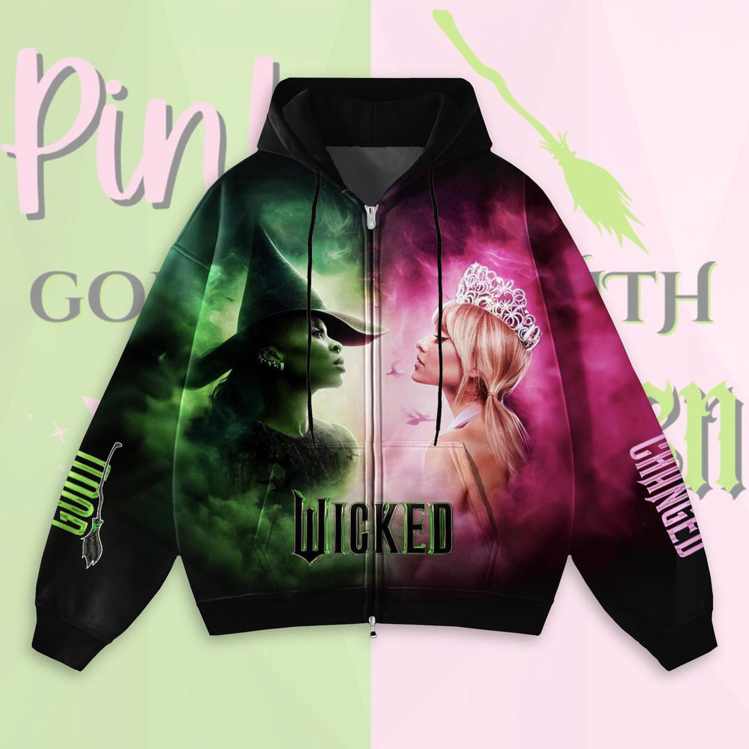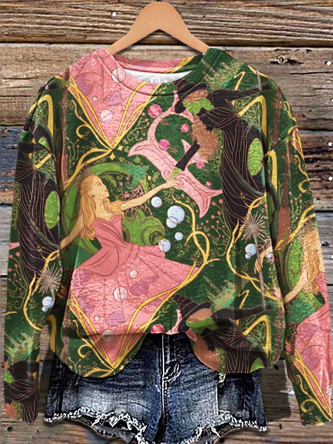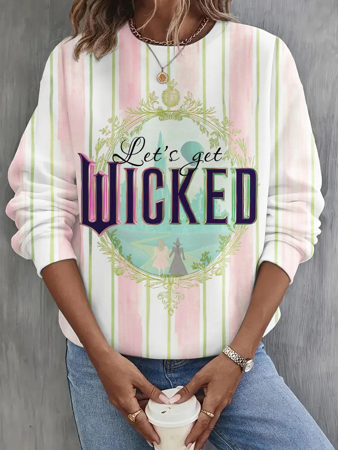 Wicked Glinda & Elphaba Hand Drawn Printed Long Sleeve Casual Top