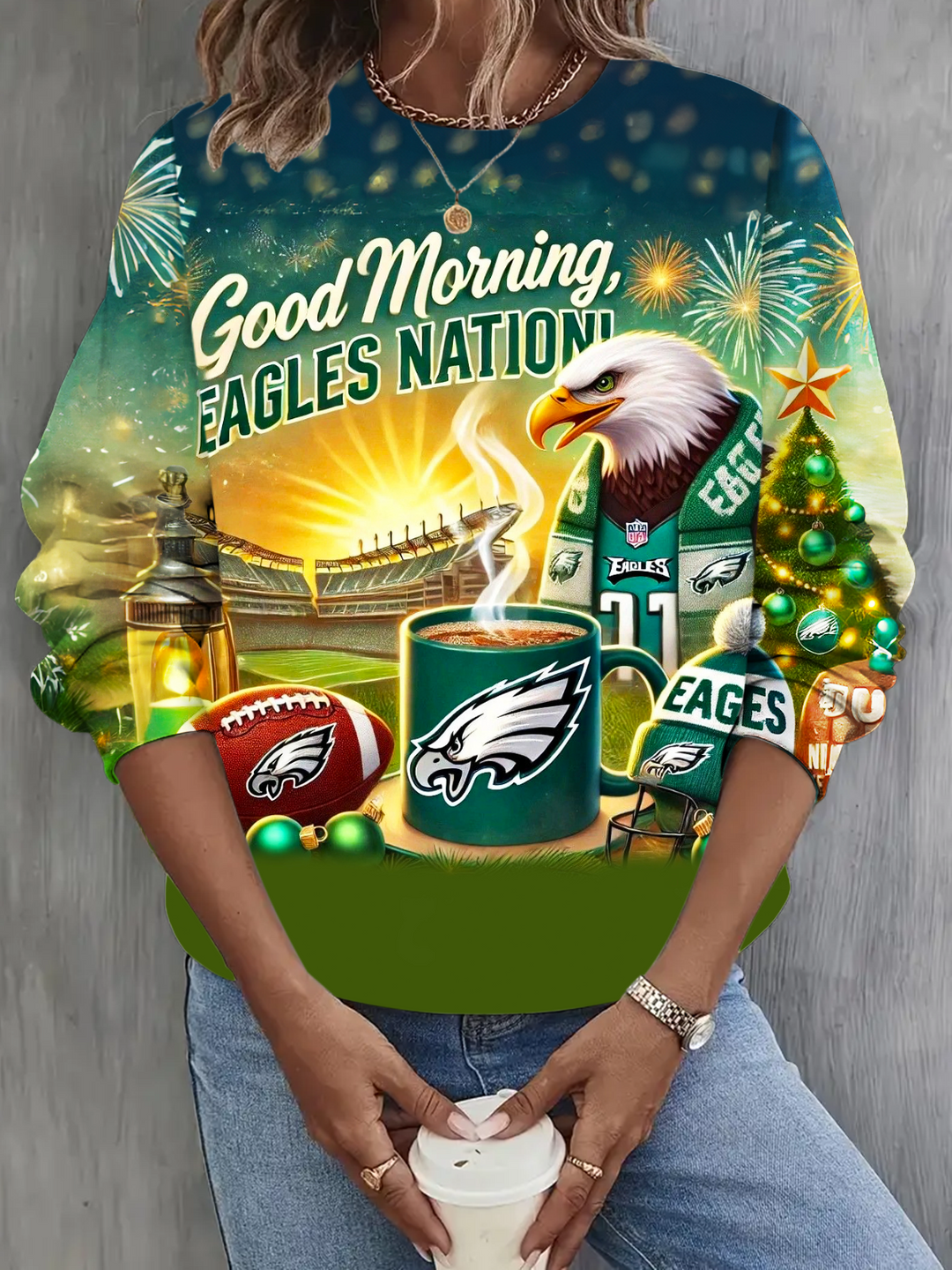 Good Morning Eagle Nation Long Sleeve Casual Top