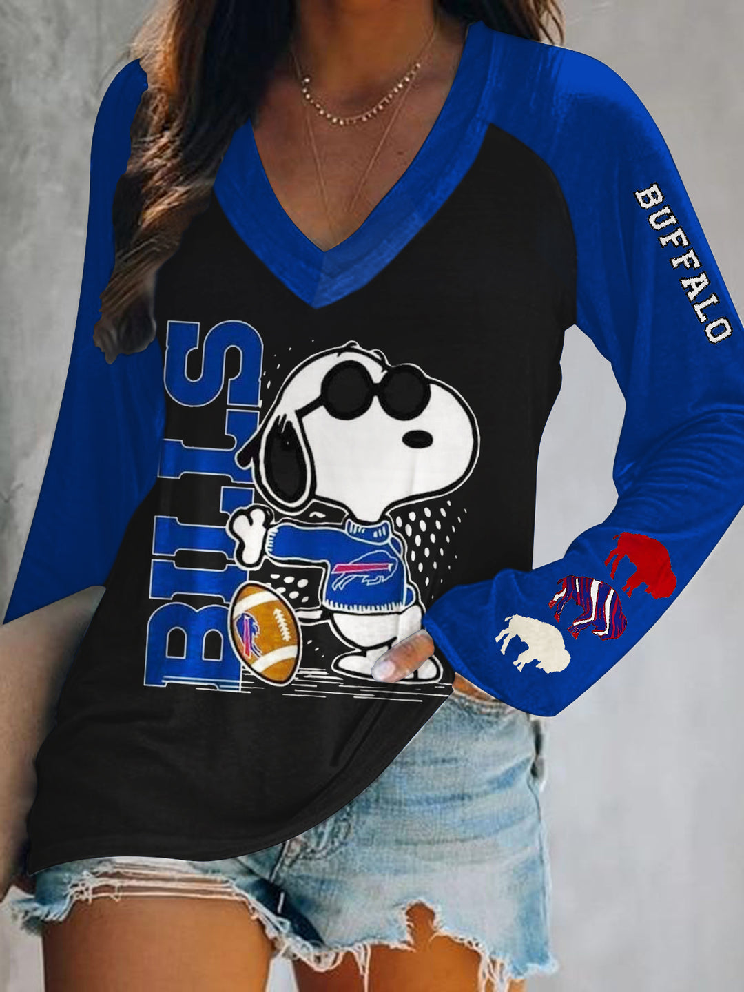 Buffalo Bills Snoopy Print V-Neck Long Sleeve Top