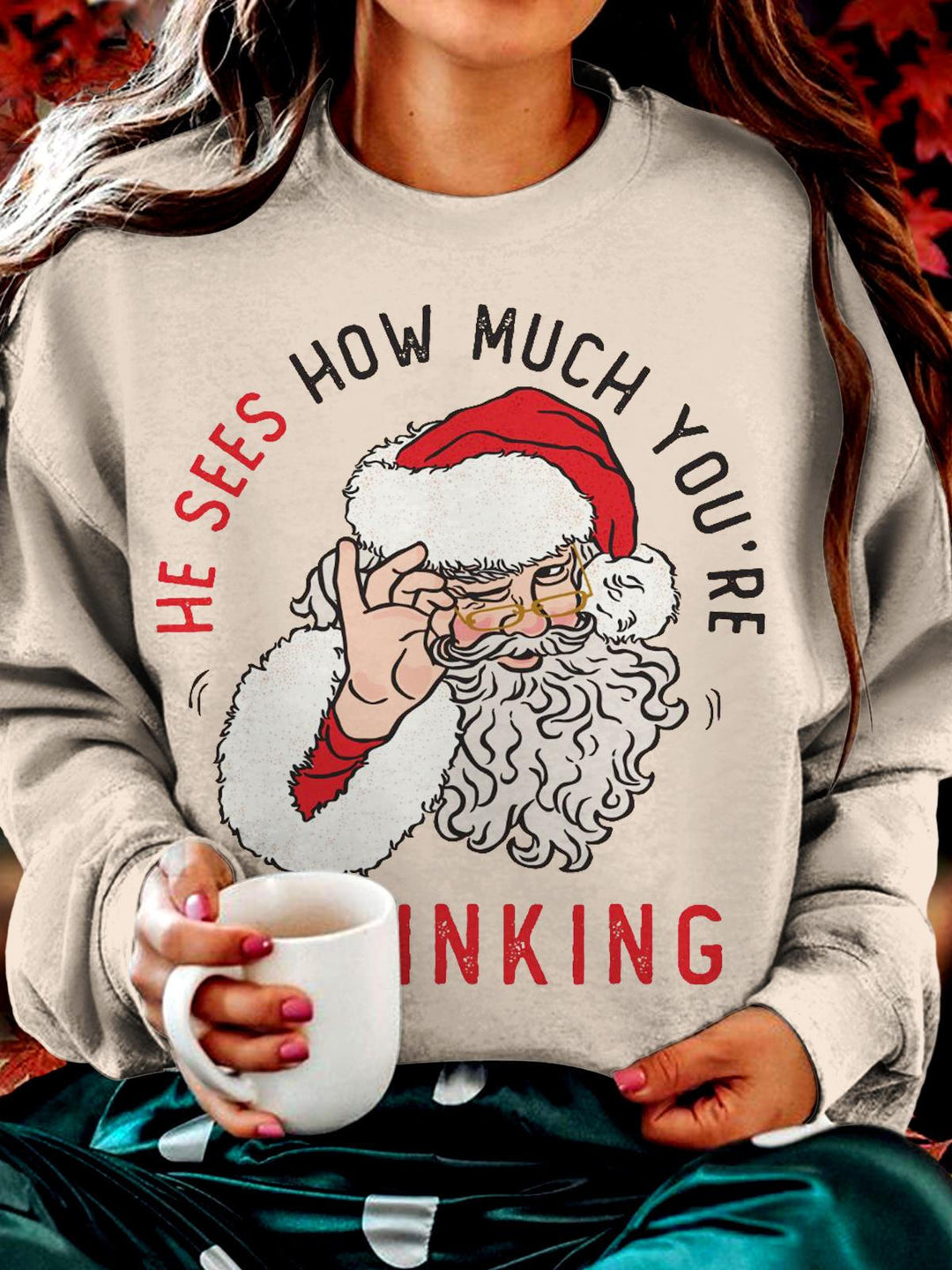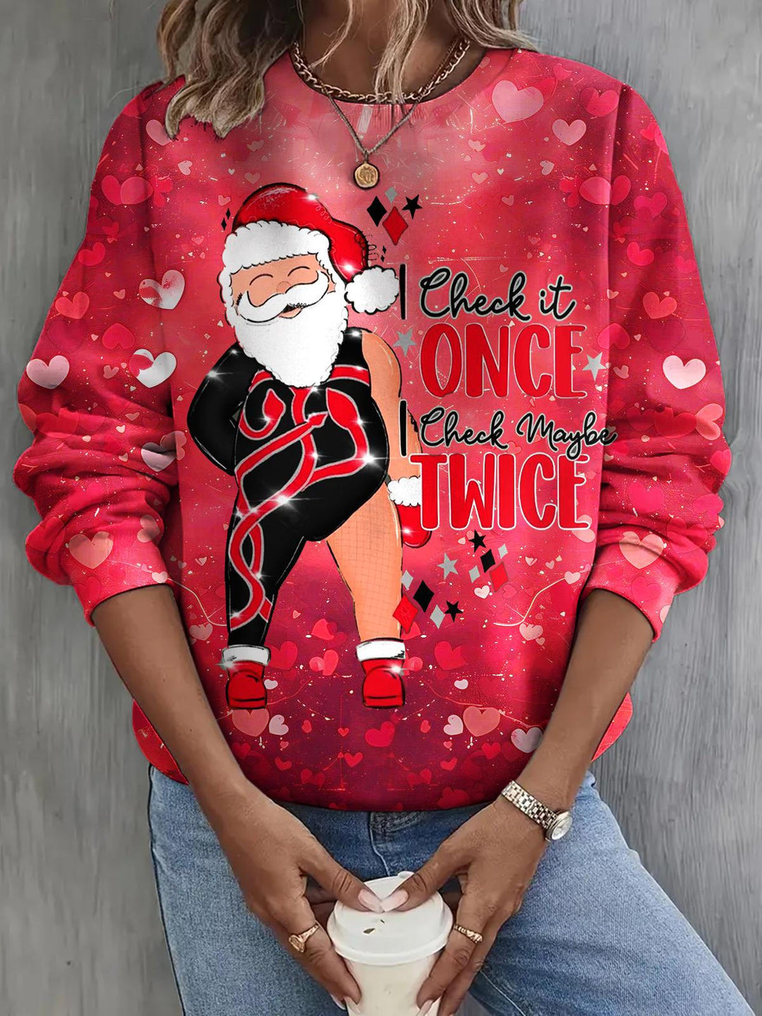 Santa Claus Fun Words Printed Long Sleeve Casual Top
