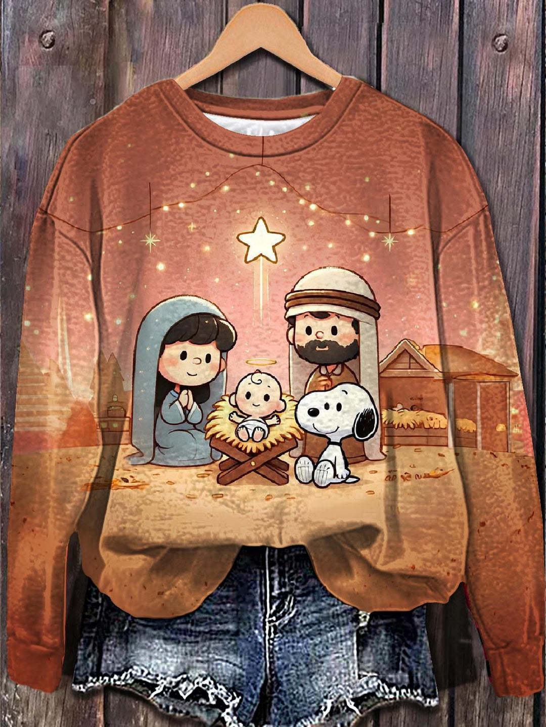 Retro Winter Coffee Bookstore Snoopy Printed Long Sleeve Casual Top