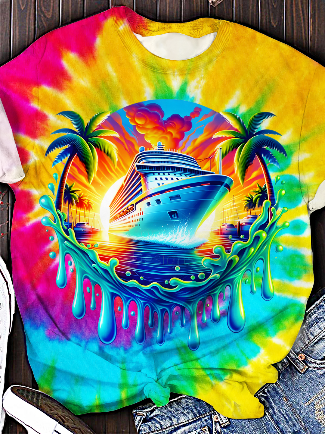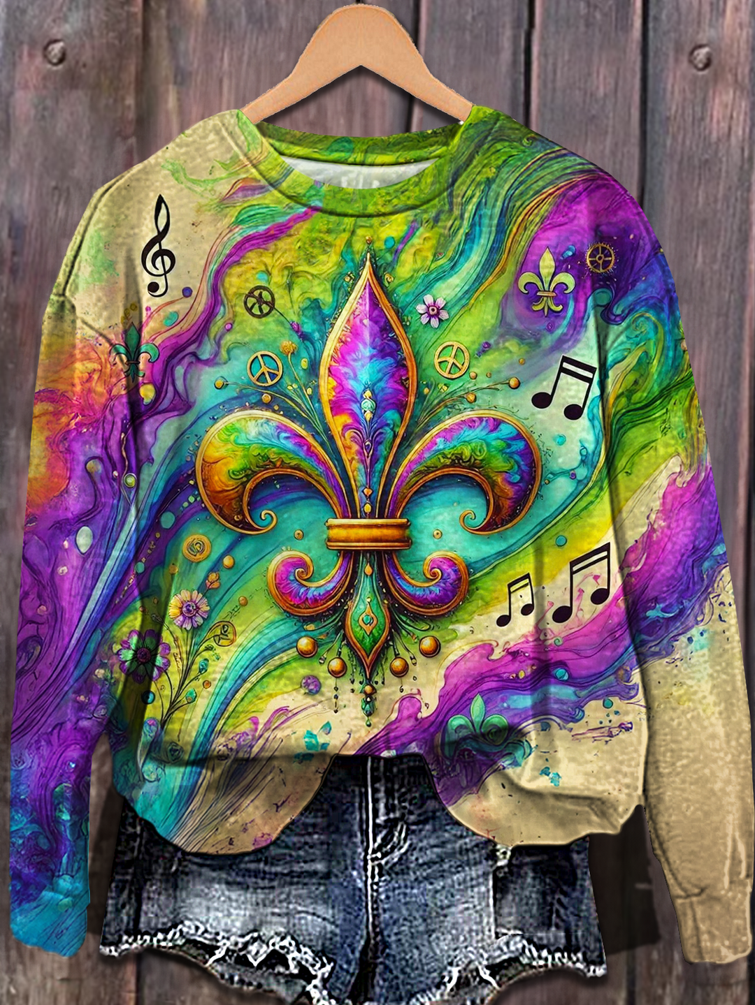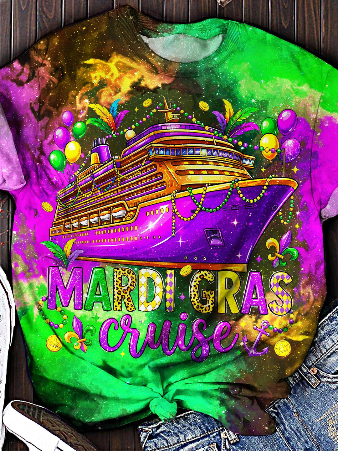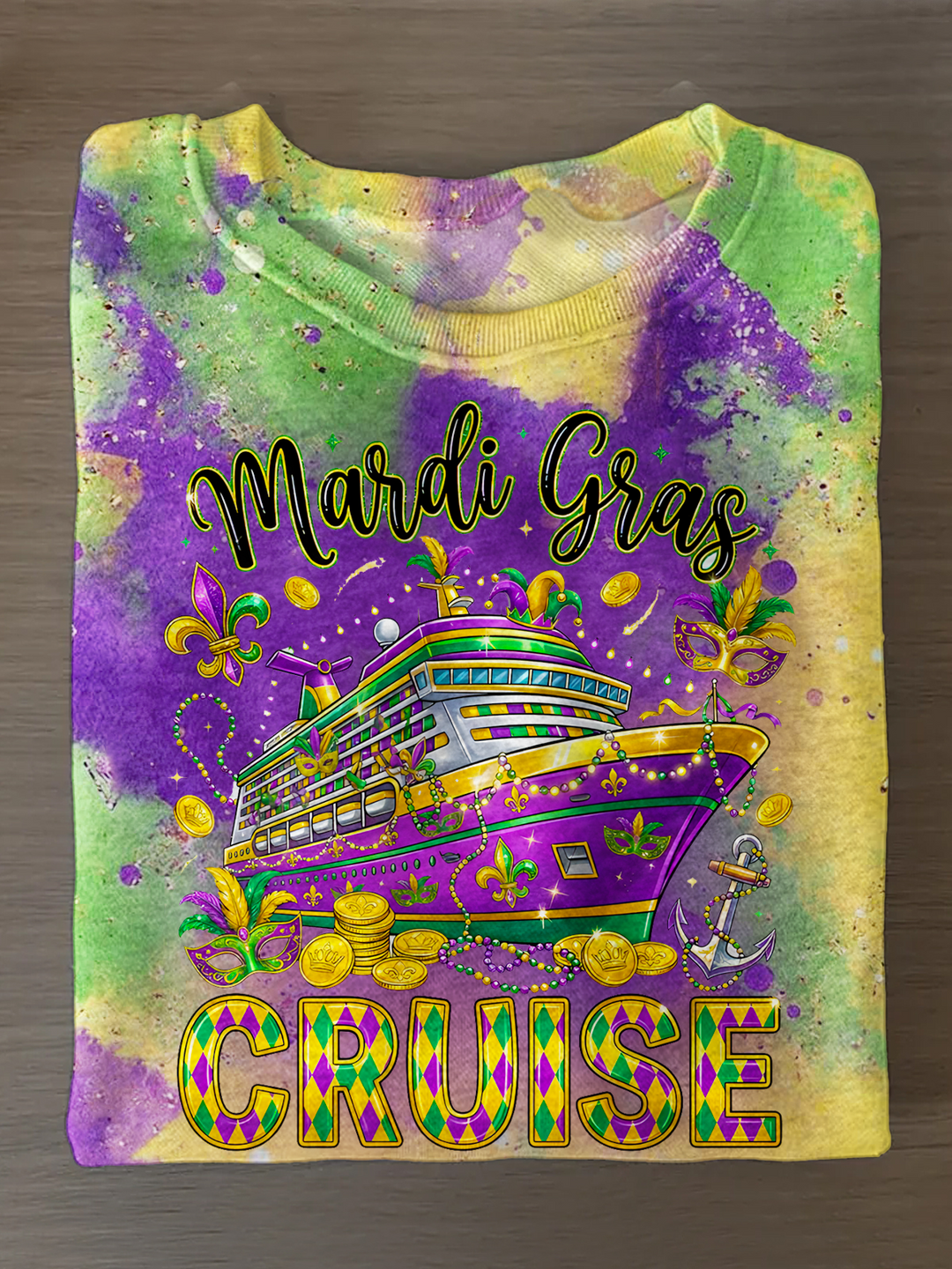 Mardi Gras Cruise Printed Long Sleeve Casual Top