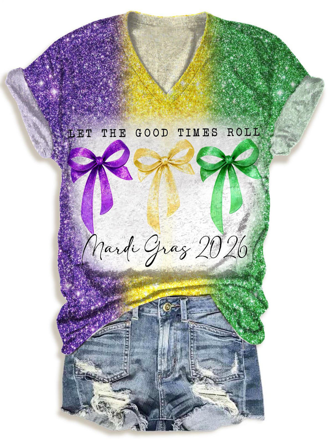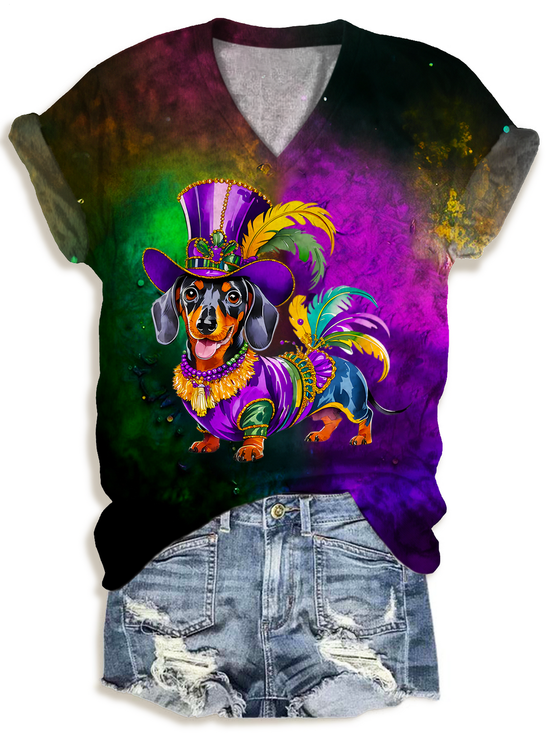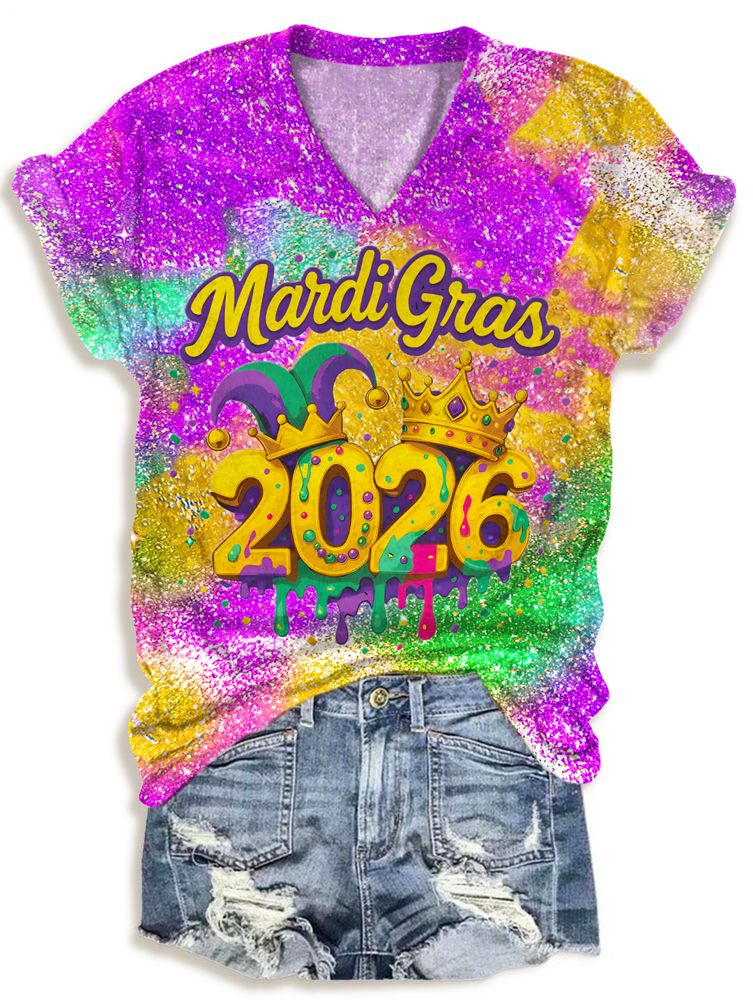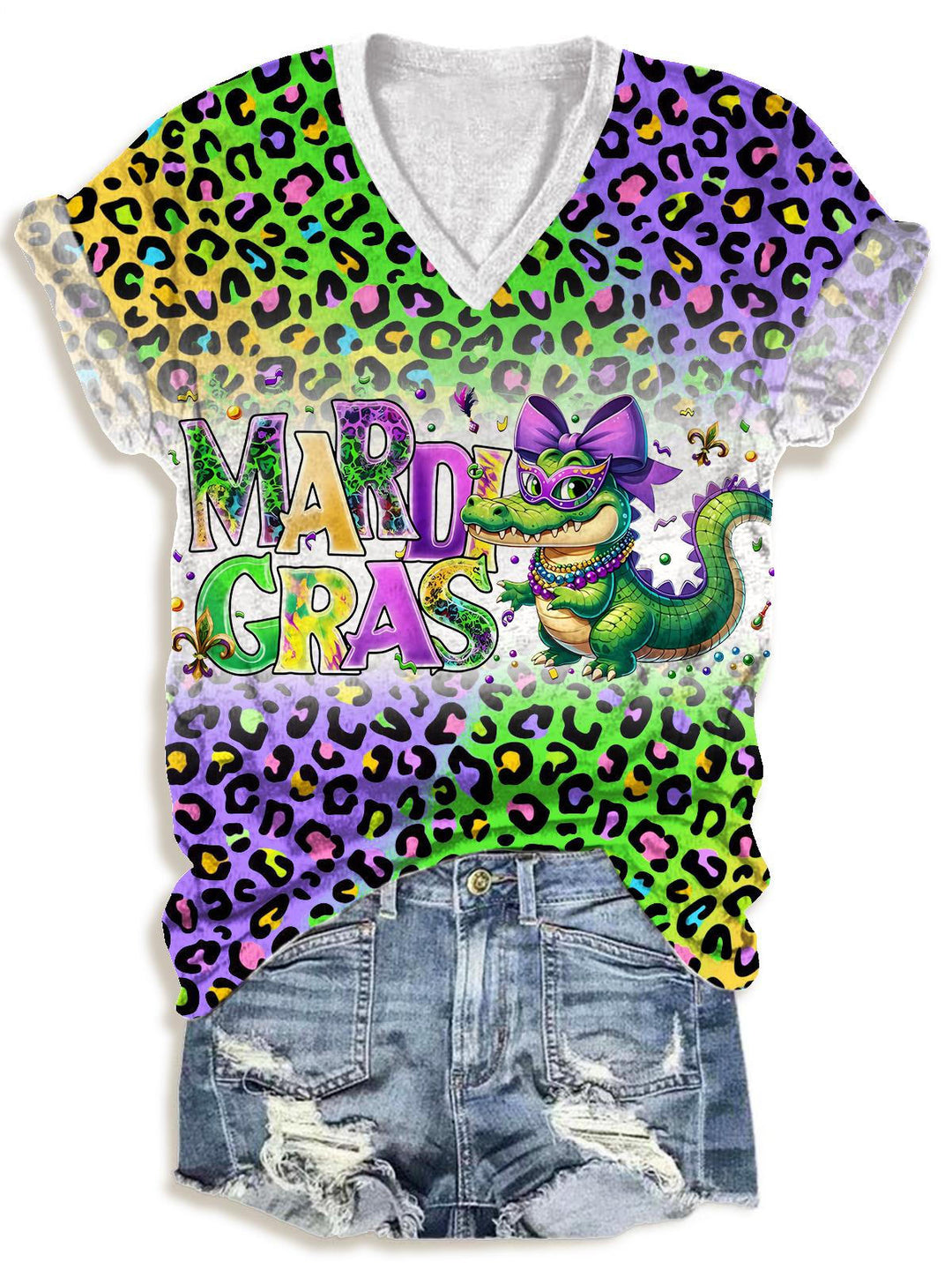 Mardi Gras Leopard Crocodile V-neck T-Shirt