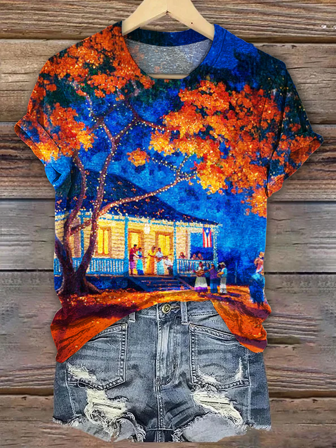 Rustic Puerto Rican Christmas Crew Neck T-shirt
