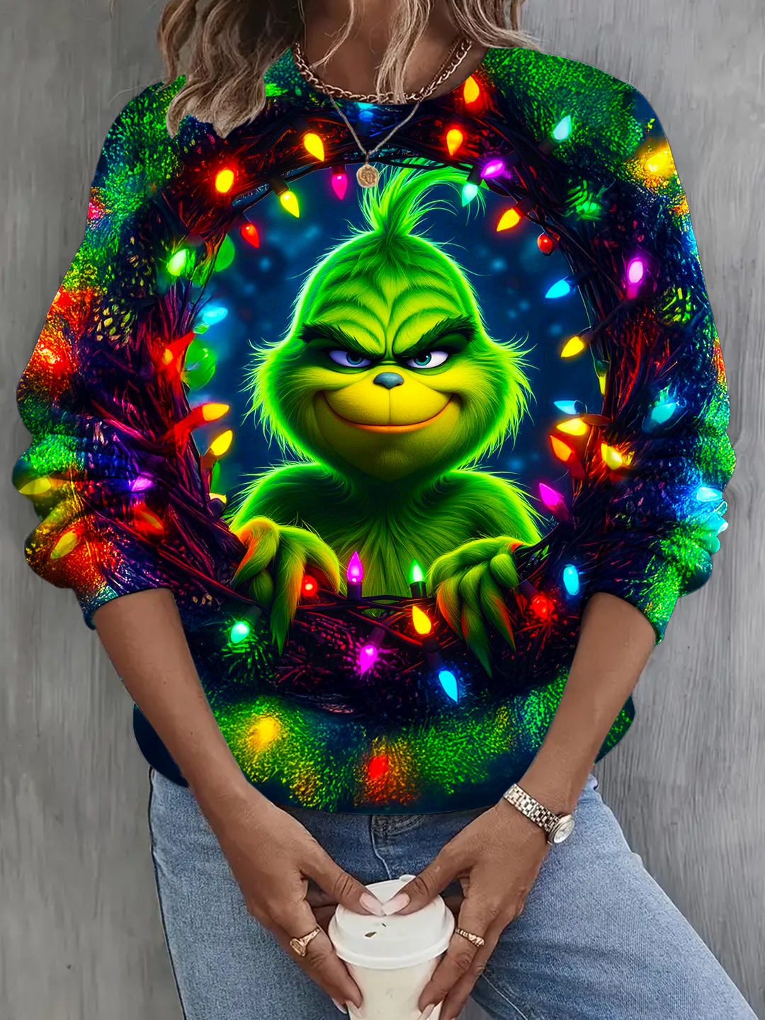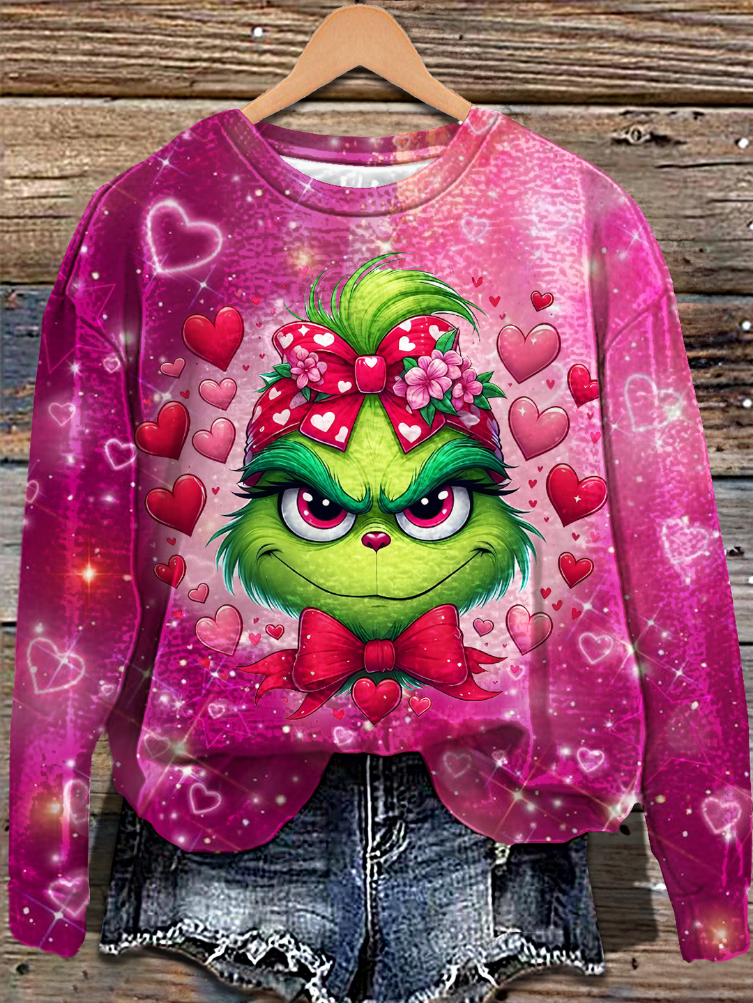Fun Valentine's Day Heart-shaped Grinch Printed Long Sleeve Casual Top