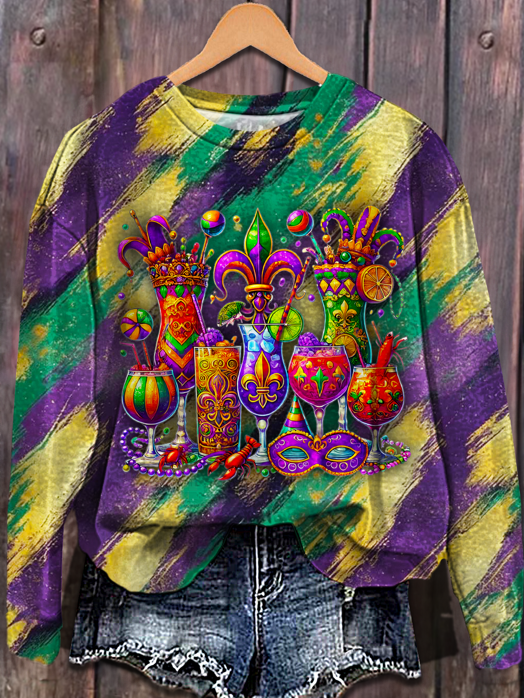 Mardi Gras Cocktail Printed Long Sleeve Casual Top