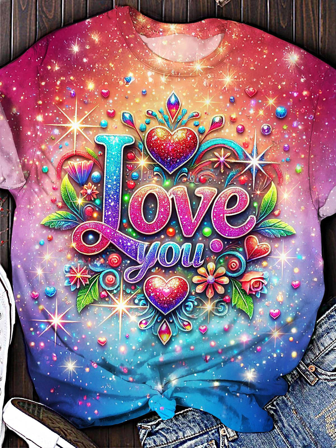 Valentine's Day LOVE Print Crew Neck T-shirt