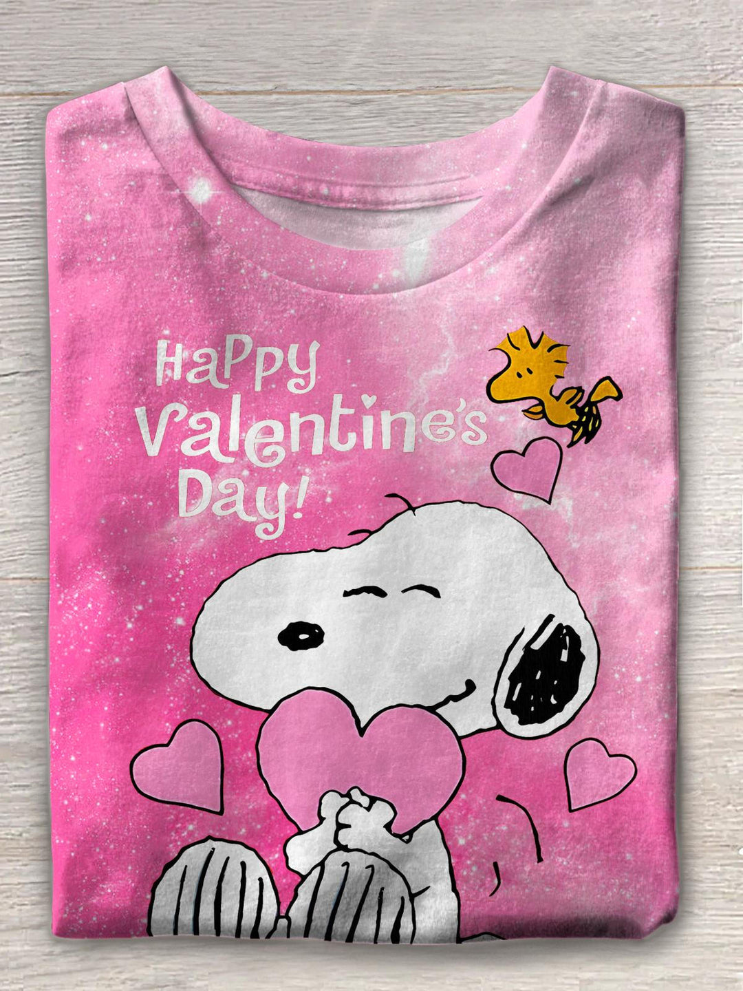 Valentine's Day Snoopy Print Crew Neck T-shirt