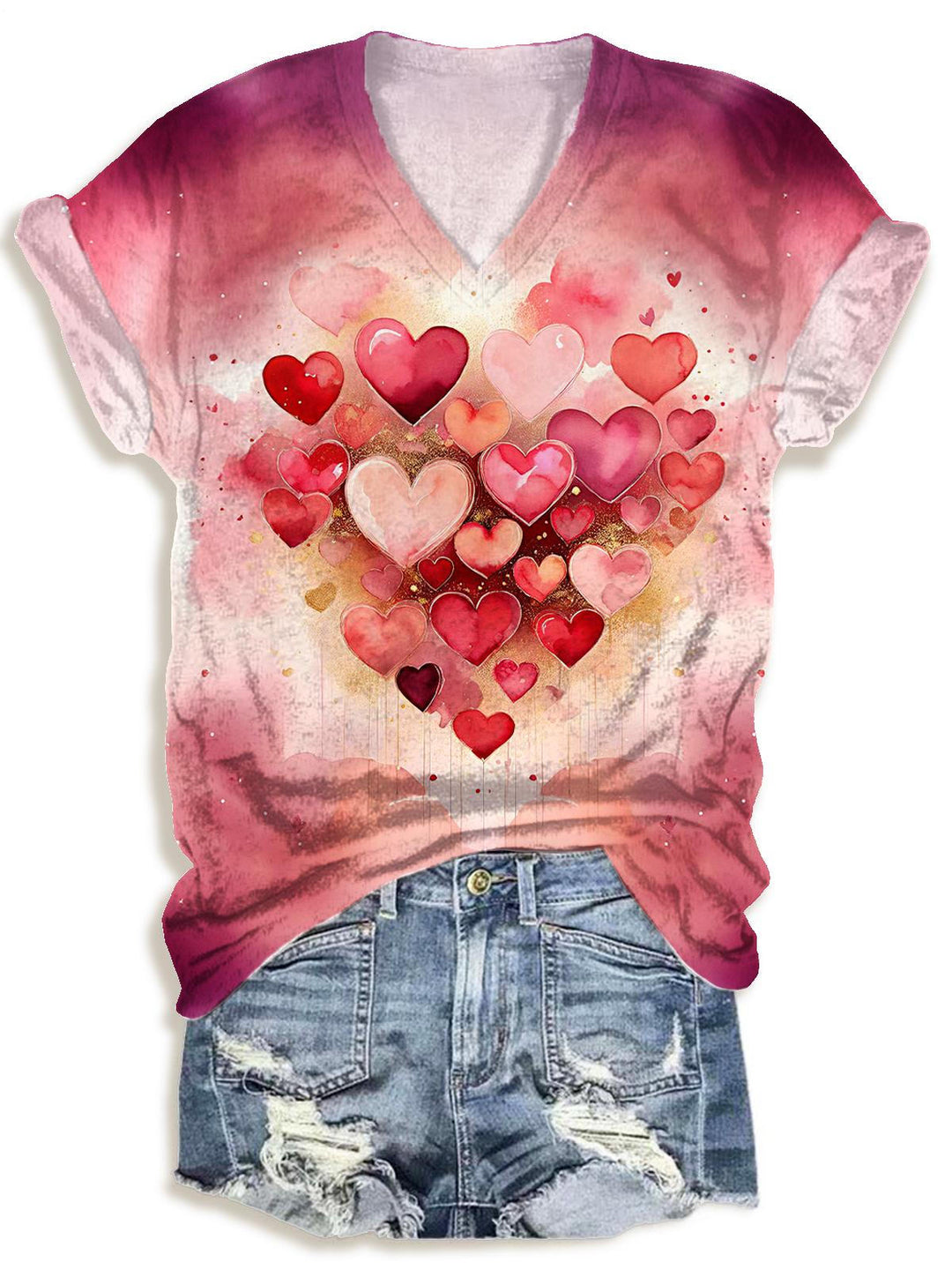 Tie-Dye Valentine's Day Heart V-neck T-Shirt