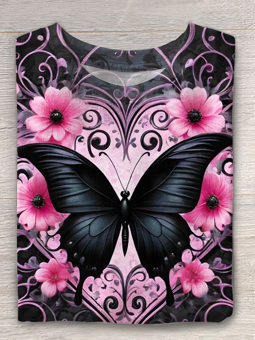 Retro Valentine's Day Butterfly Love Crew Neck T-shirt
