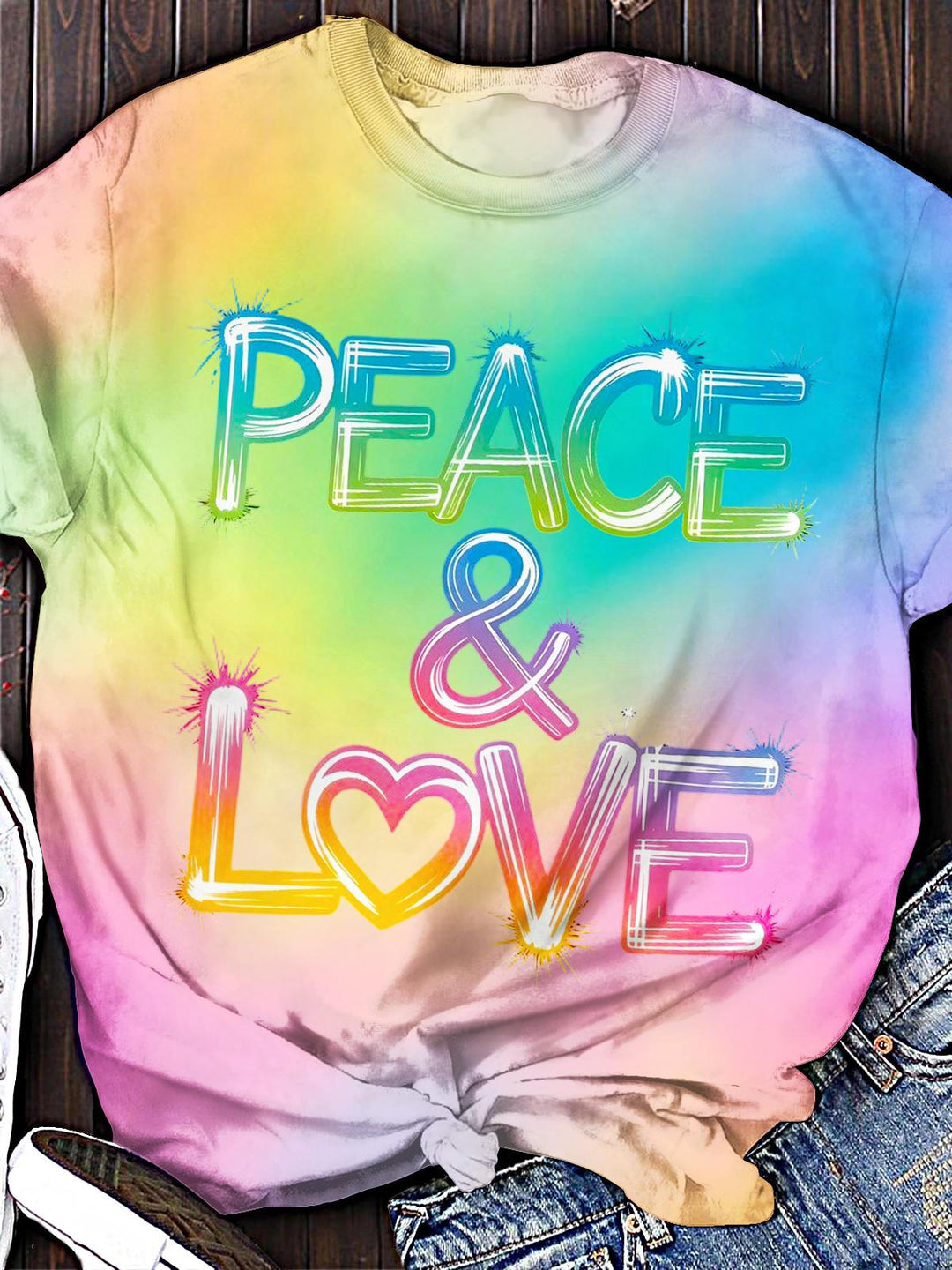 Color Gradient PEACE AND LOVE Crew Neck T-shirt