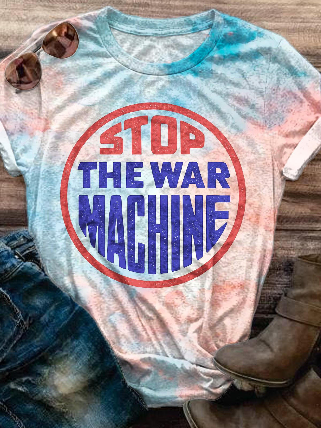 STOP THE WAR MACHINE Crew Neck T-shirt