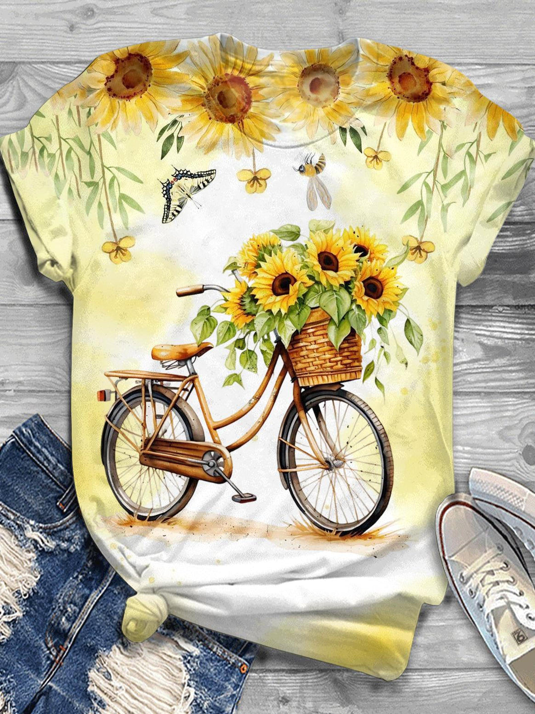Spring Sunflower Bike Crew Neck T-shirt