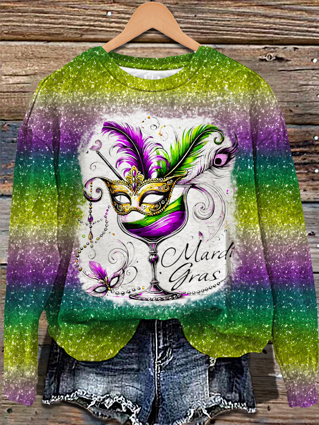 Mardi Gras Cocktail Printed Long Sleeve Casual Top