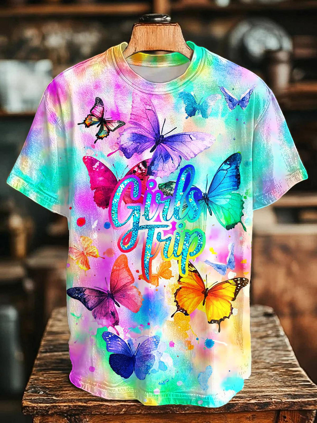 Girl Trip Butterfly Print Crew Neck T-shirt