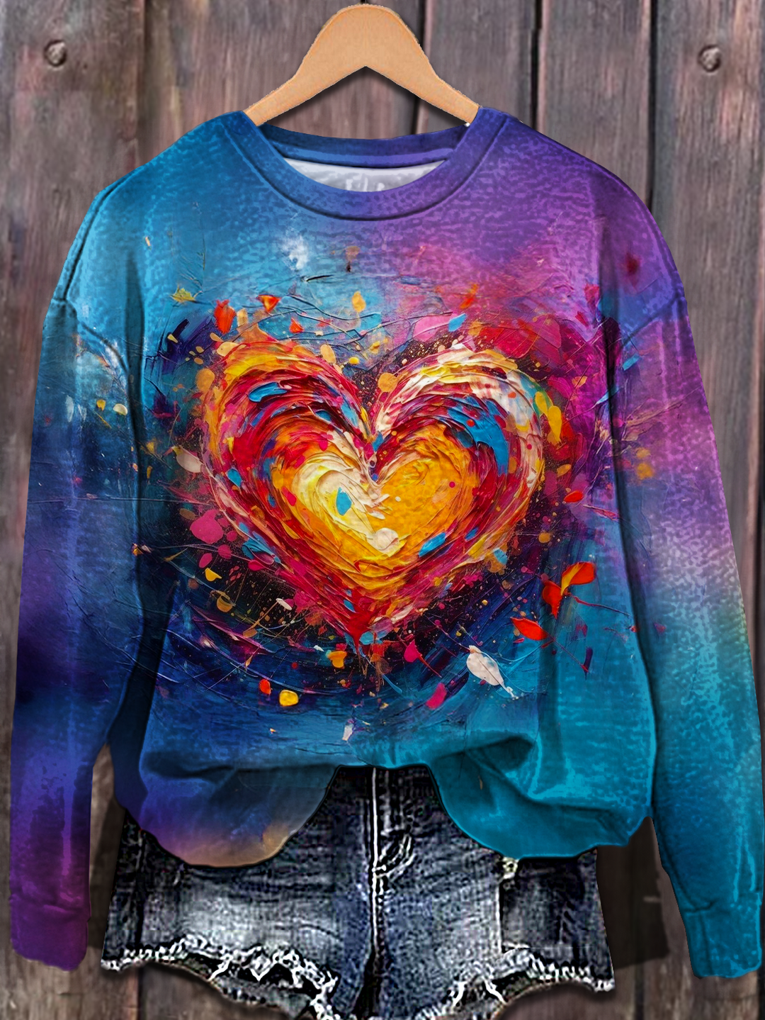 Tie-Dye Valentine's Day Heart Printed Long Sleeve Casual Top