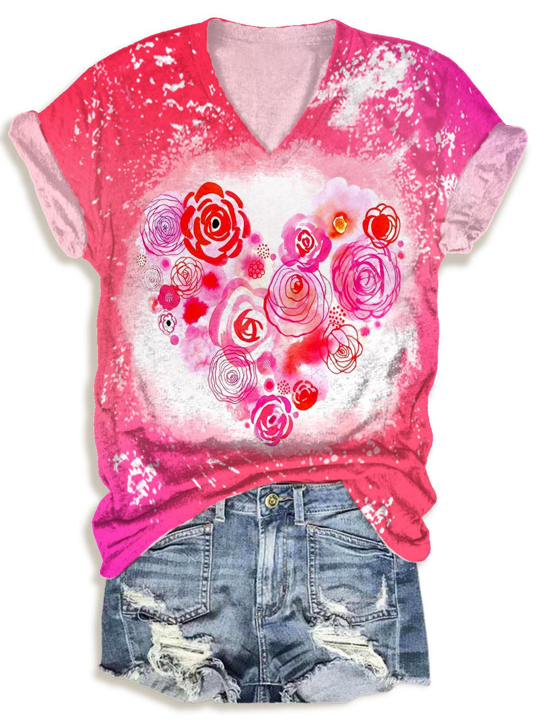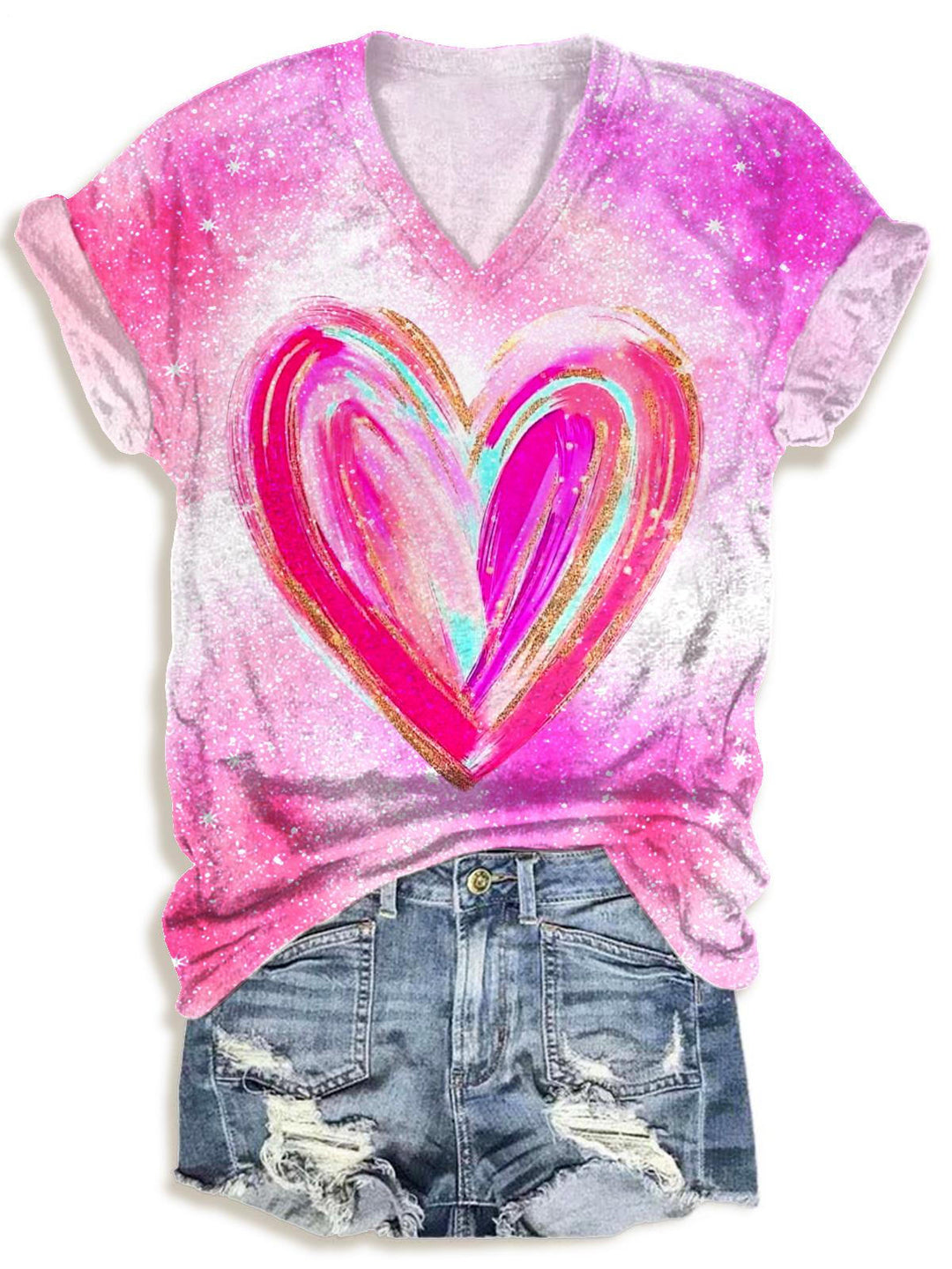 Tie-Dye Valentine's Day Heart V-neck T-Shirt