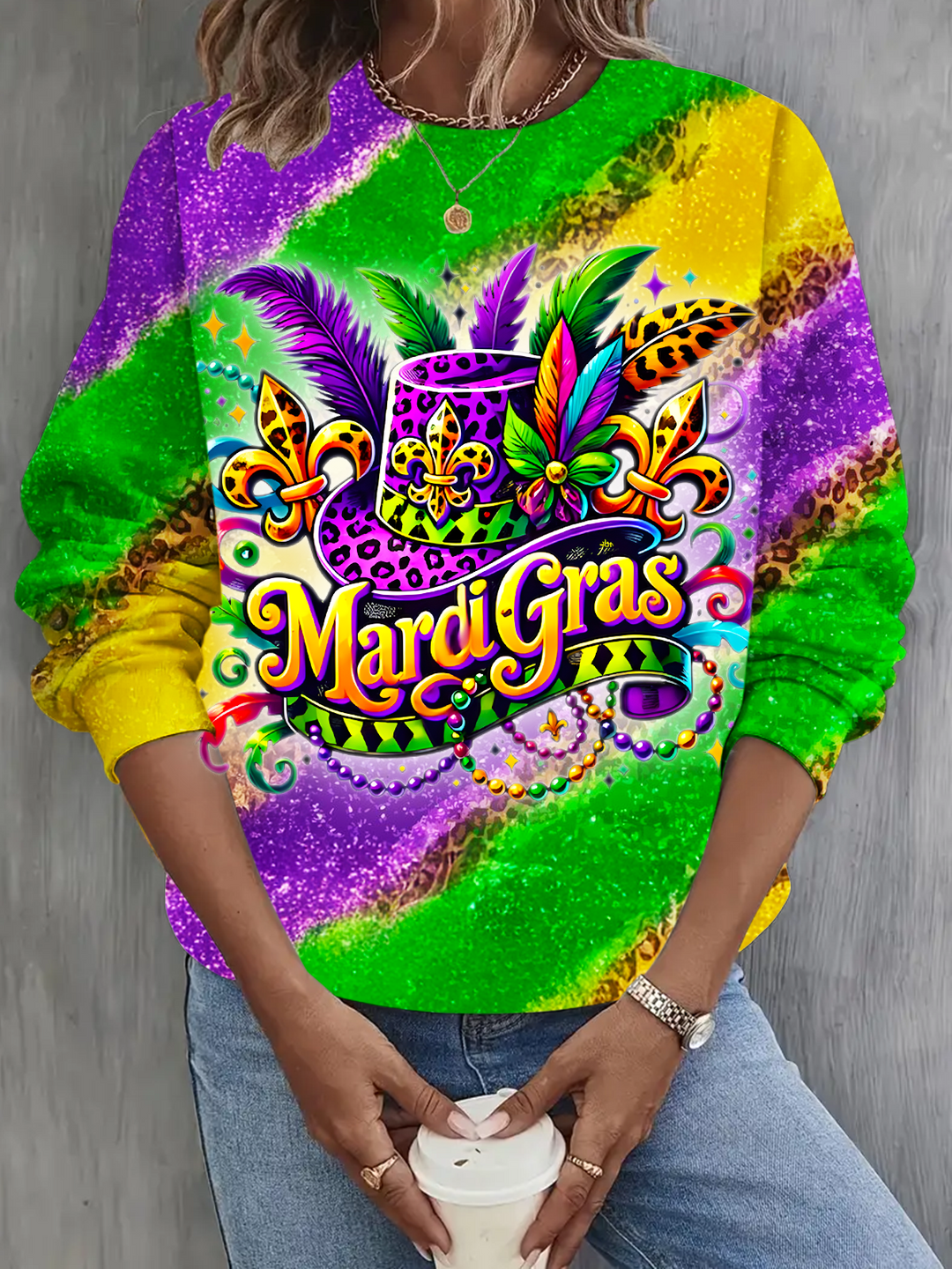 Mardi Gras Cruise Printed Long Sleeve Casual Top