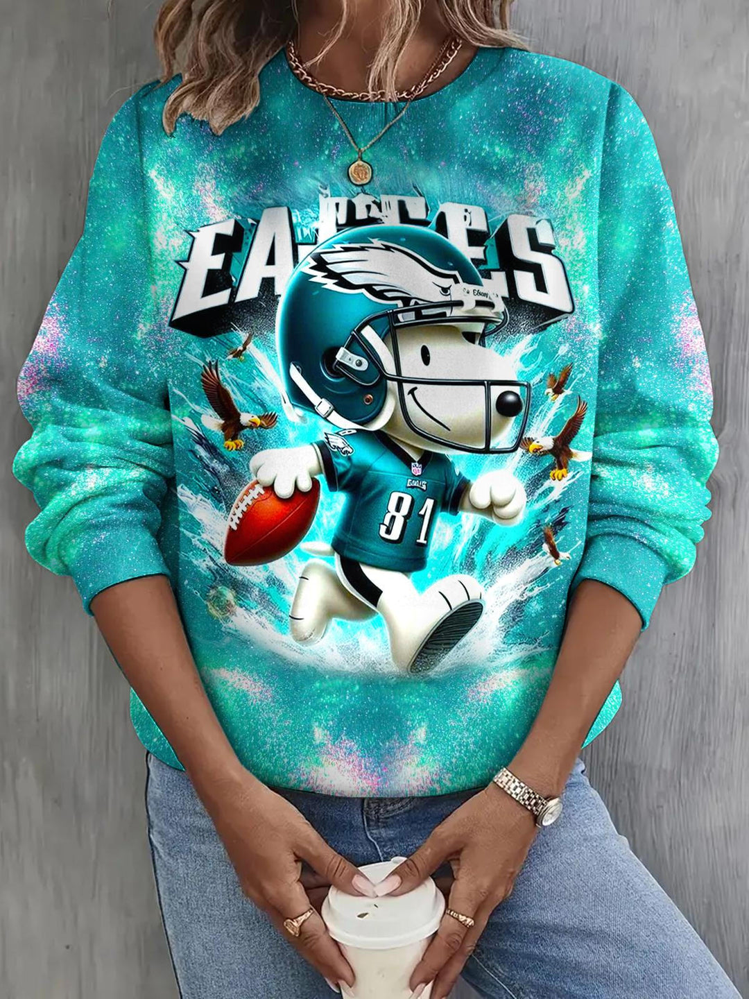 Football Philadelphia Eagles Print Long Sleeve Casual Top