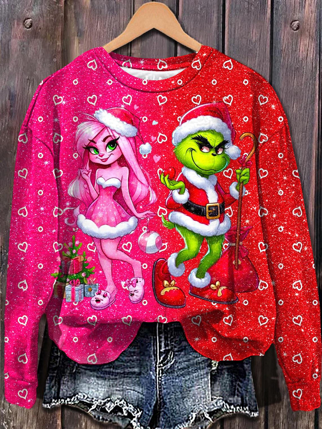Fun Valentine's Day Heart-shaped Grinch Printed Long Sleeve Casual Top