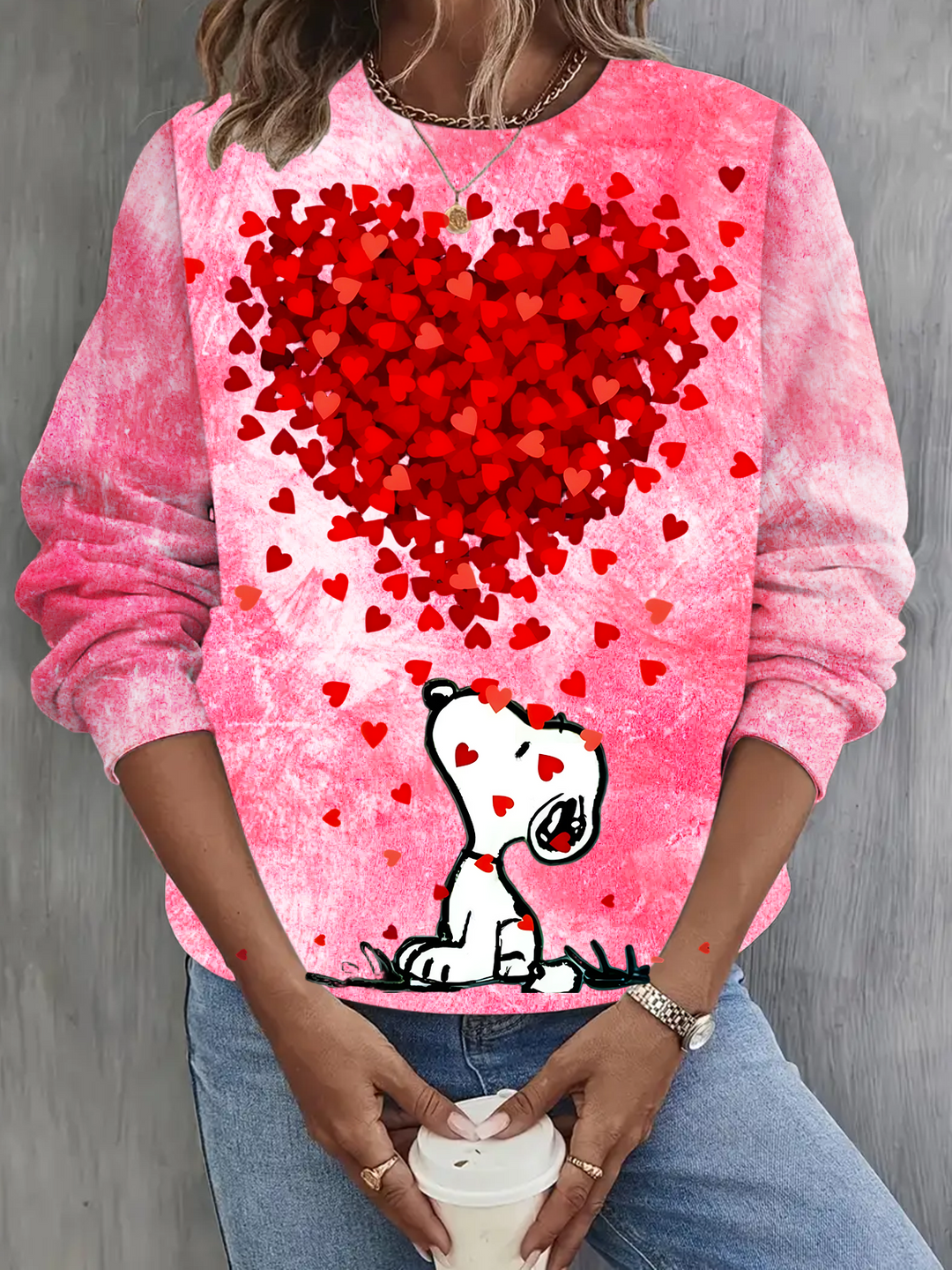 Fun Valentine's Day Snoopy Love Printed Long Sleeve Casual Top