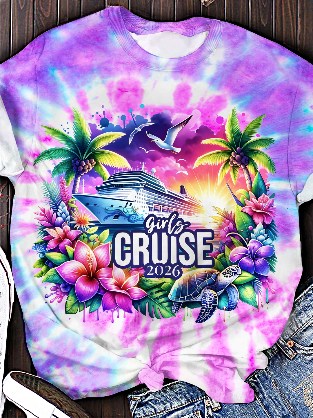 Tie-dye Cruise Ship 2026 Crew Neck T-shirt