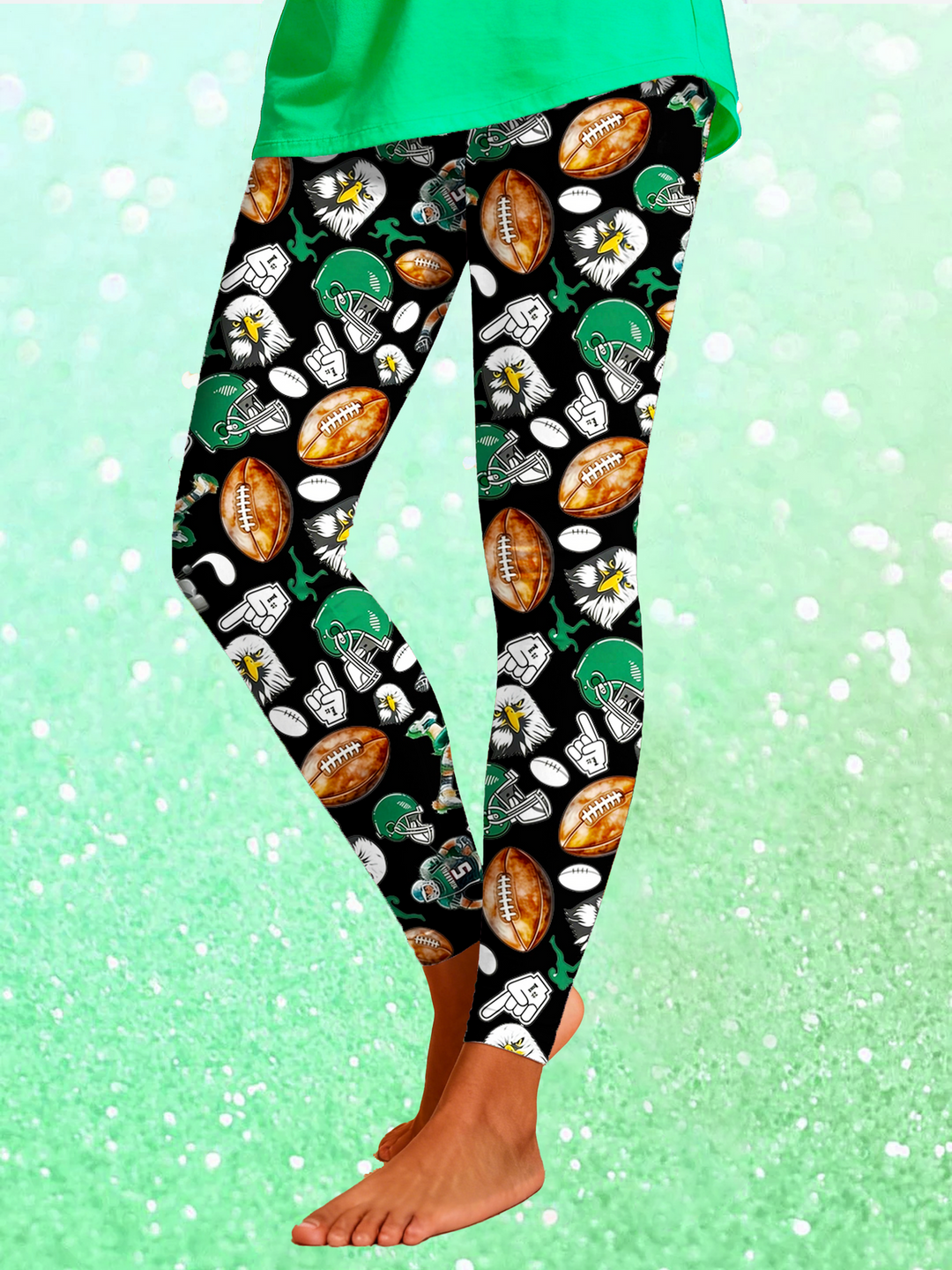 Kelly green Eagles bow Print Leggings
