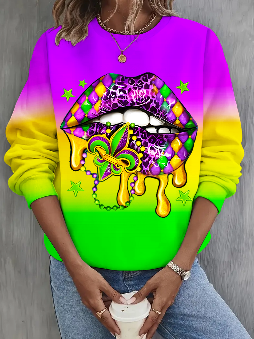 Mardi Gras Lips Drip Long Sleeve Casual Top