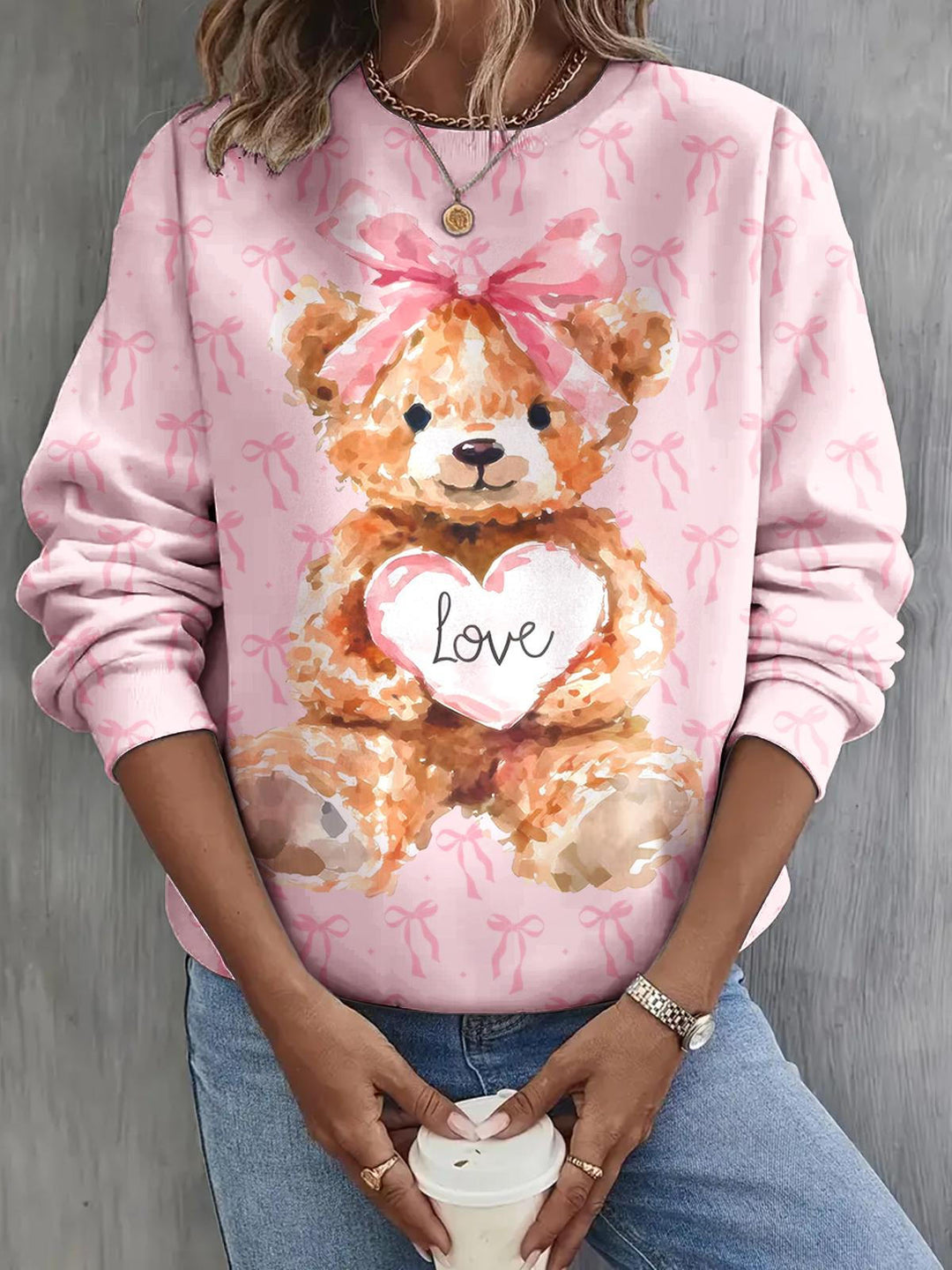 Valentine's Day Bear Print Long Sleeve Casual Top