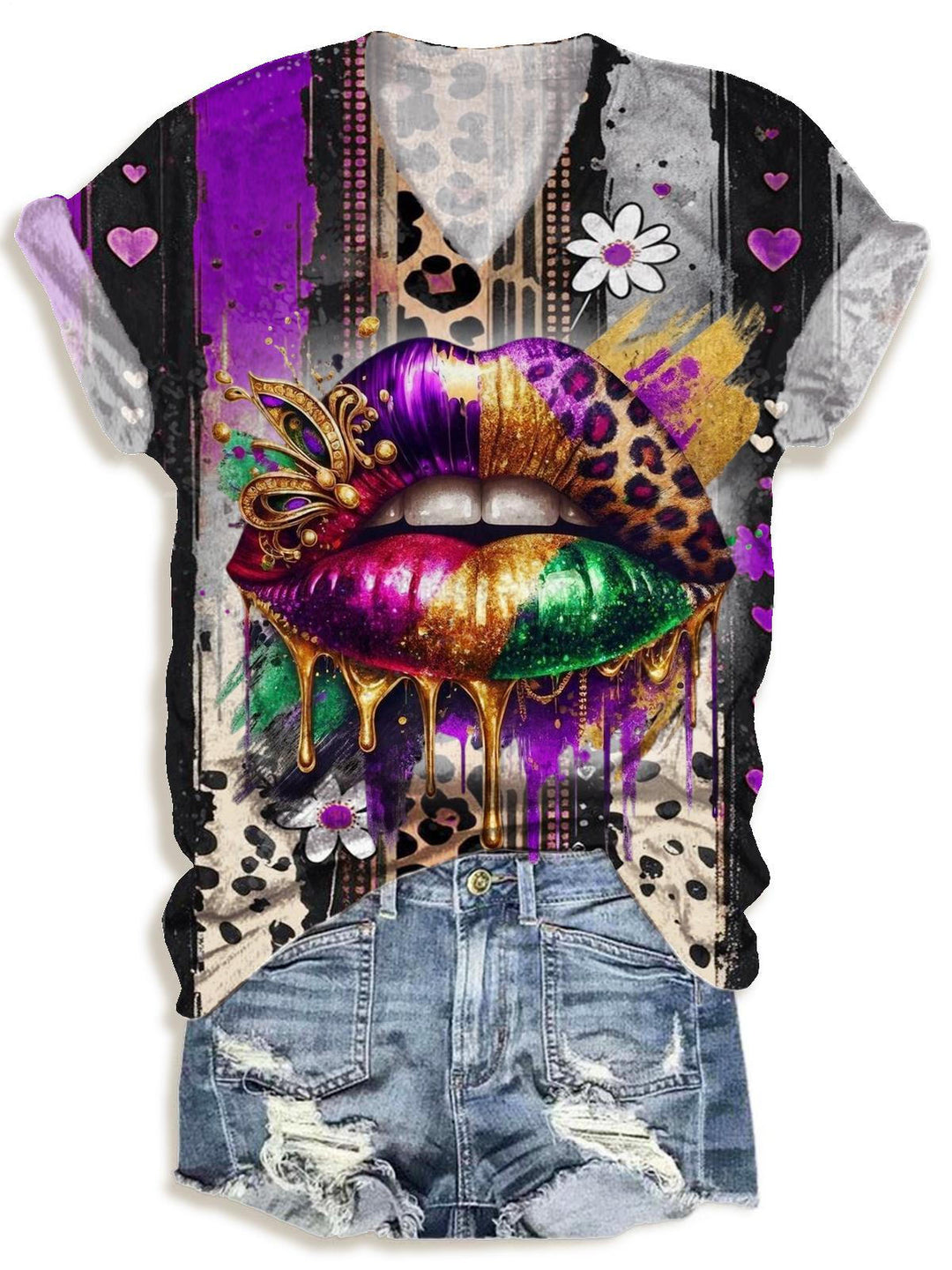 Mardi Gras Lips V-neck T-Shirt