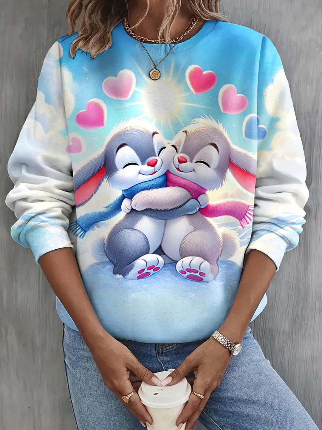 Valentine's Day Bunny Print Long Sleeve Casual Top