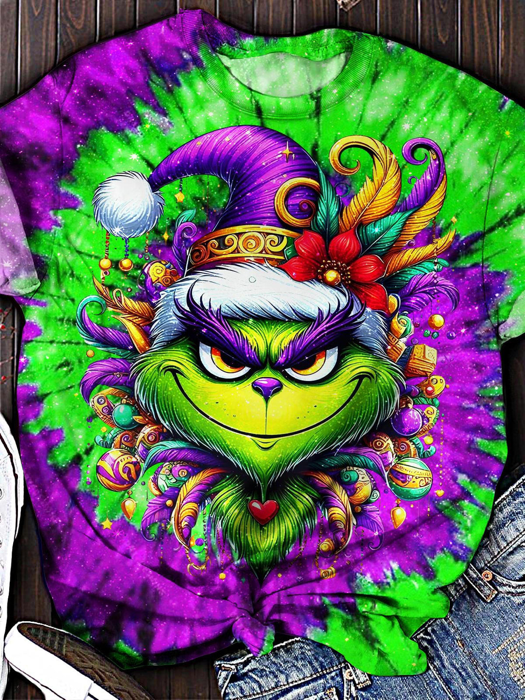 Mardi Gras Grinch Crew Neck T-shirt
