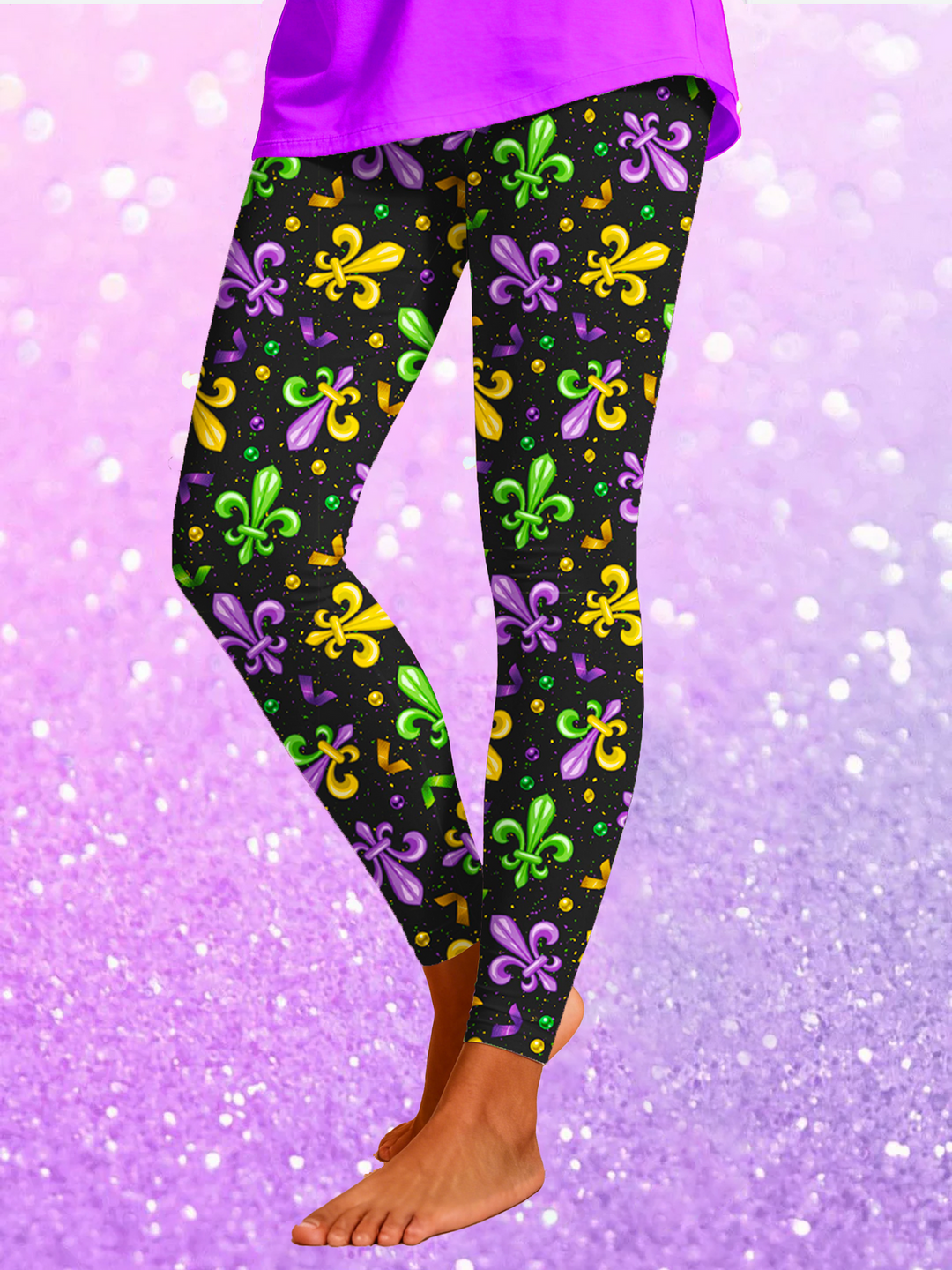 Fleur-de-lis Mardi Gras Print Leggings
