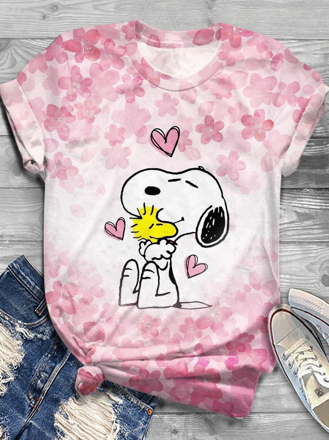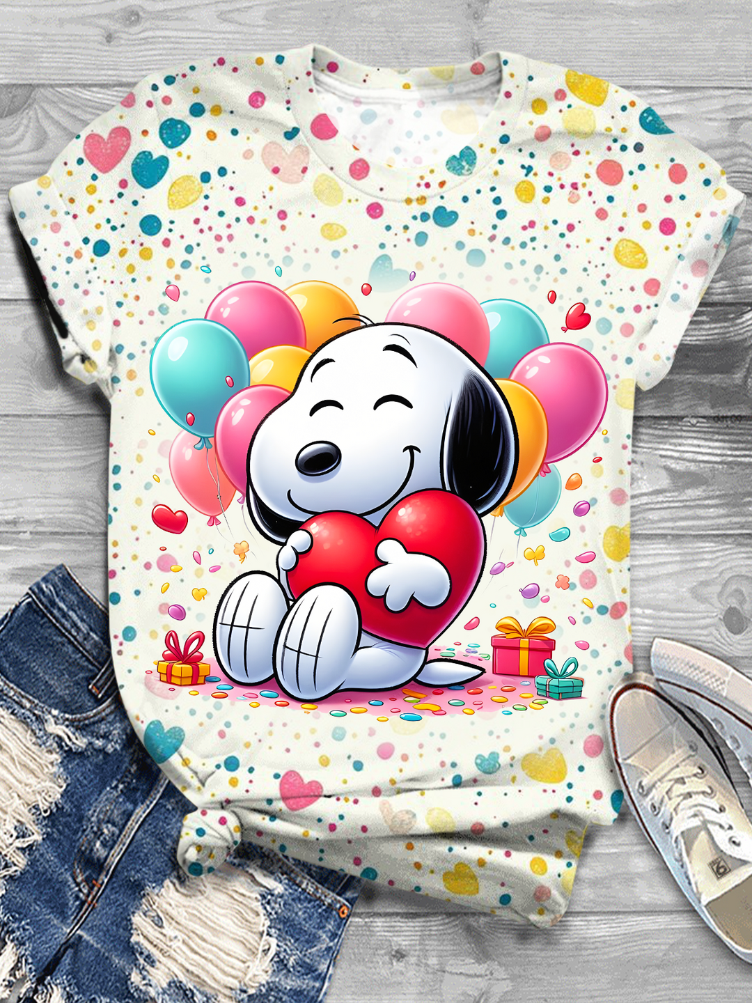 Fun Cartoon Valentine's Day Snoopy Crew Neck T-shirt