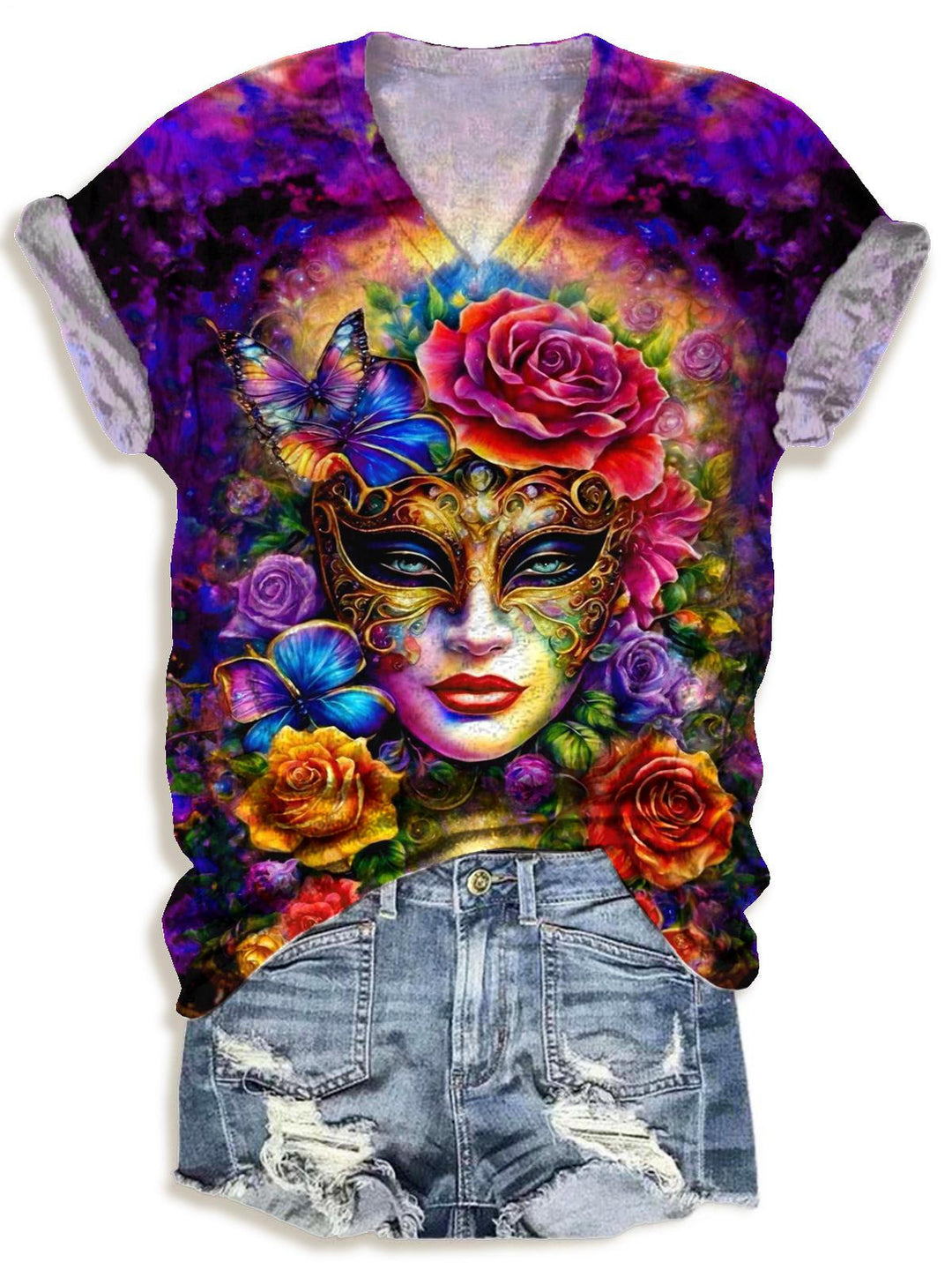 Mardi Gras Dwarf Printed V-neck T-Shirt