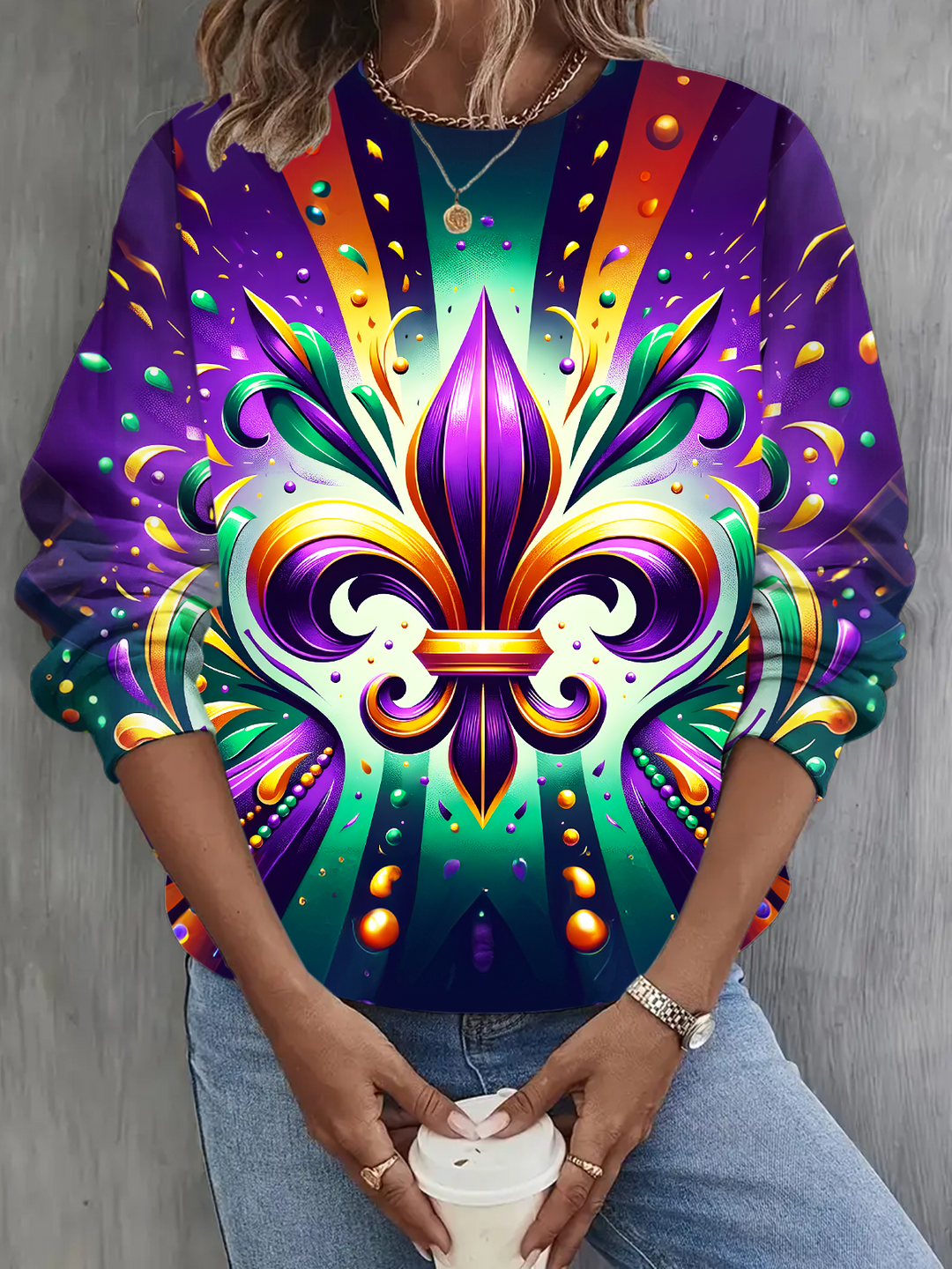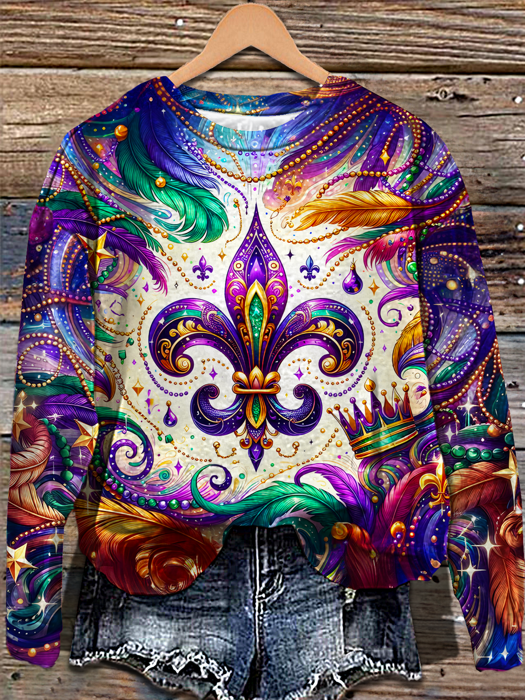 Fleur De Lis Mardi Gras Long Sleeve Casual Top