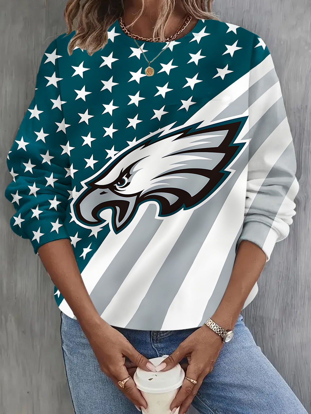 Philadelphia Eagles American Flag Long Sleeve Casual Top