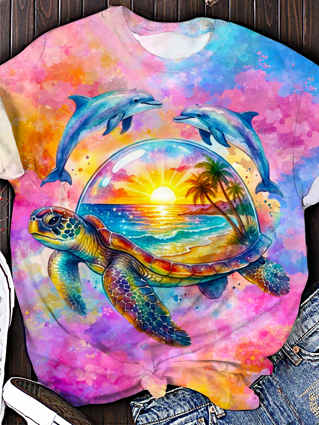 Turtle with Underwater Rainbow Crew Neck T-shirt