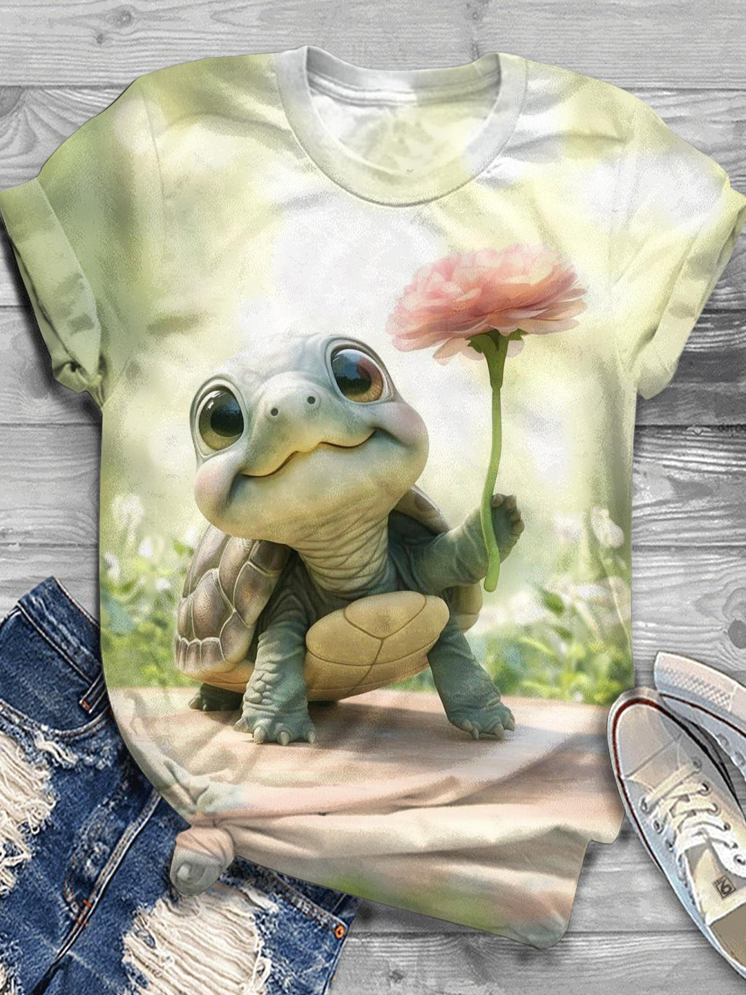 Cute Flower Delivery Turtle Crew Neck T-shirt