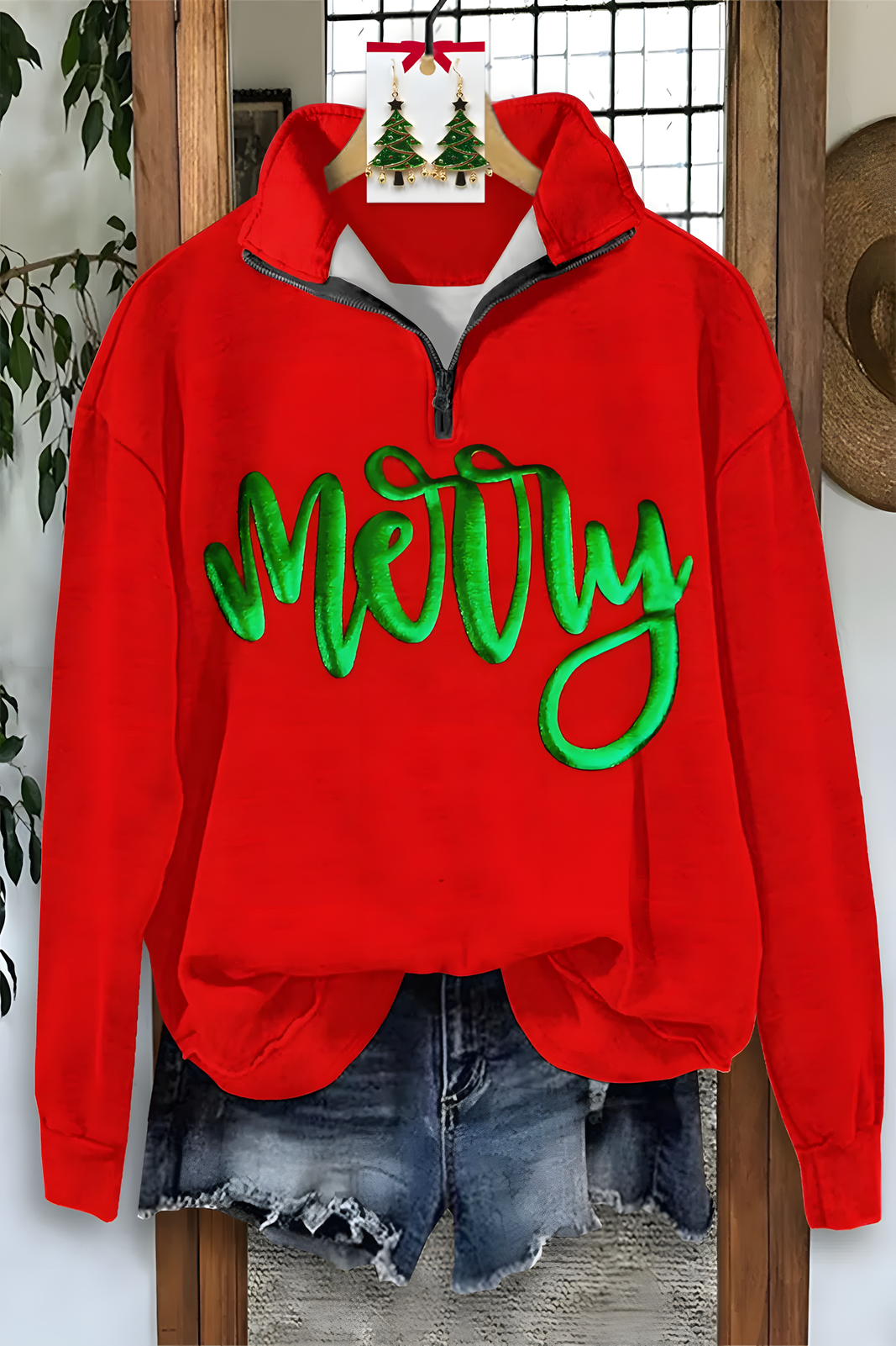 Merry Christmas Long Sleeve Zipper Sweatshirt