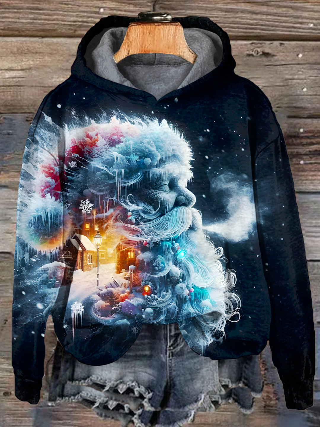 Fun Santa Claus Long Sleeve Printed Hoodie