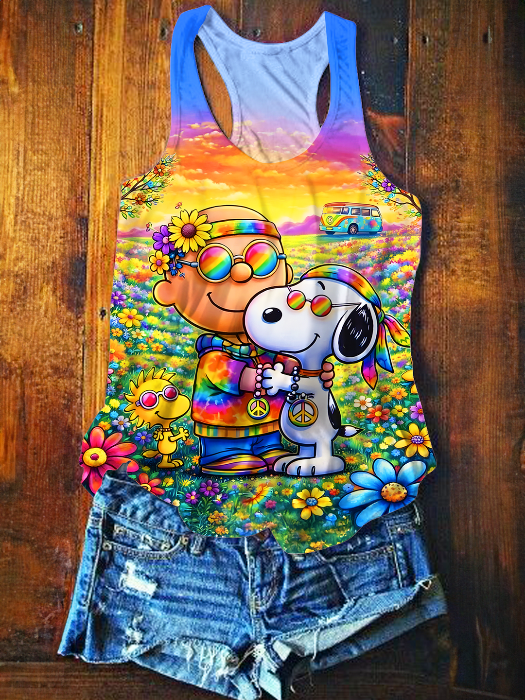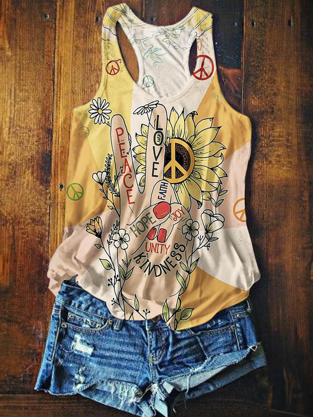 Hippie Flower Band Printed Casual Tank Top